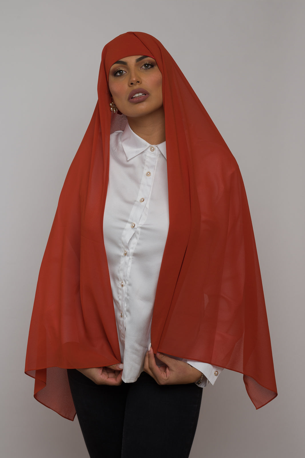 BURNT UMBER CHIFFON HIJAB W/ ATTACHED UNDERCAP