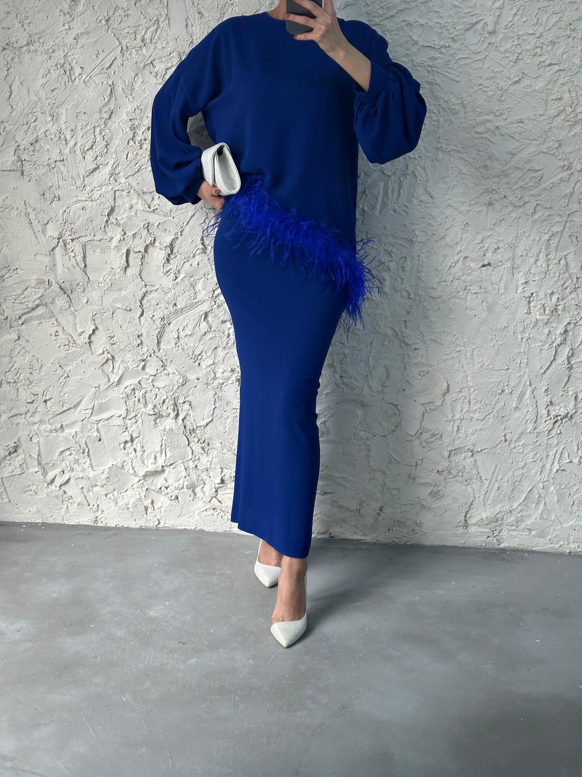 A Sophisticated design with a luxurious furline running down the center. This elegant dress combines classic modesty with a touch of timeless charm, making it a perfect choice for those seeking a unique and fashion-forward yet modest outfit.