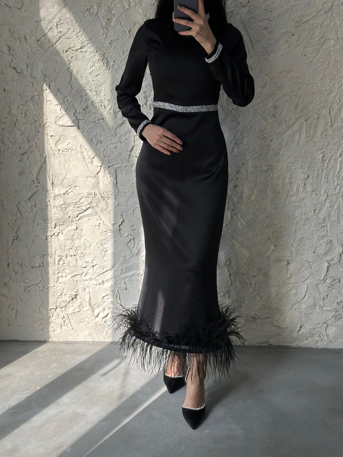 The exquisite feathered hem dress from Menatique, a fashion masterpiece that exudes sophistication and grace. This dress is adorned with a delicate feathered trim along the hemline, adding a touch of ethereal elegance to your attire. Perfect for those special occasions when you want to make a statement while maintaining a sense of modesty and timeless style.