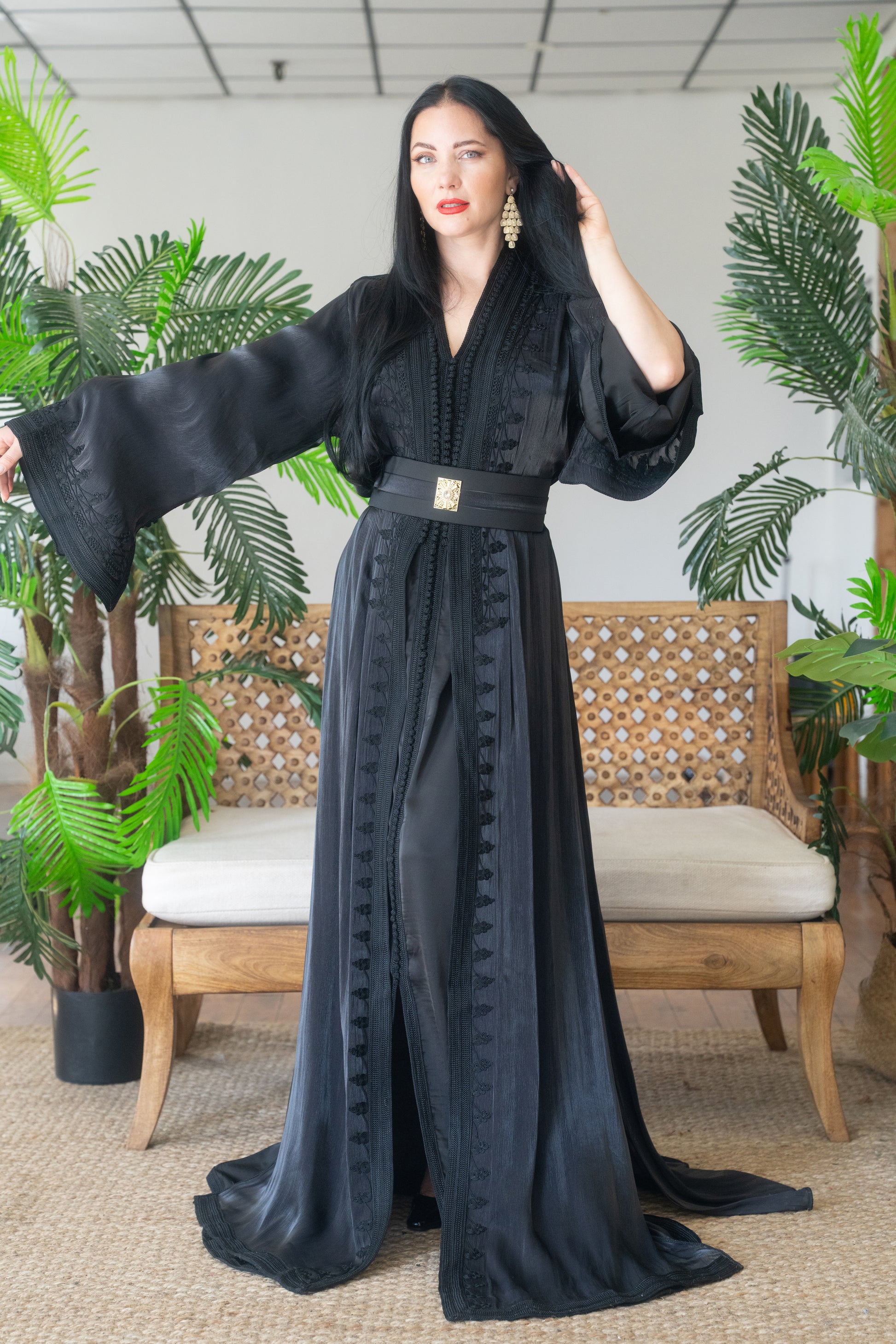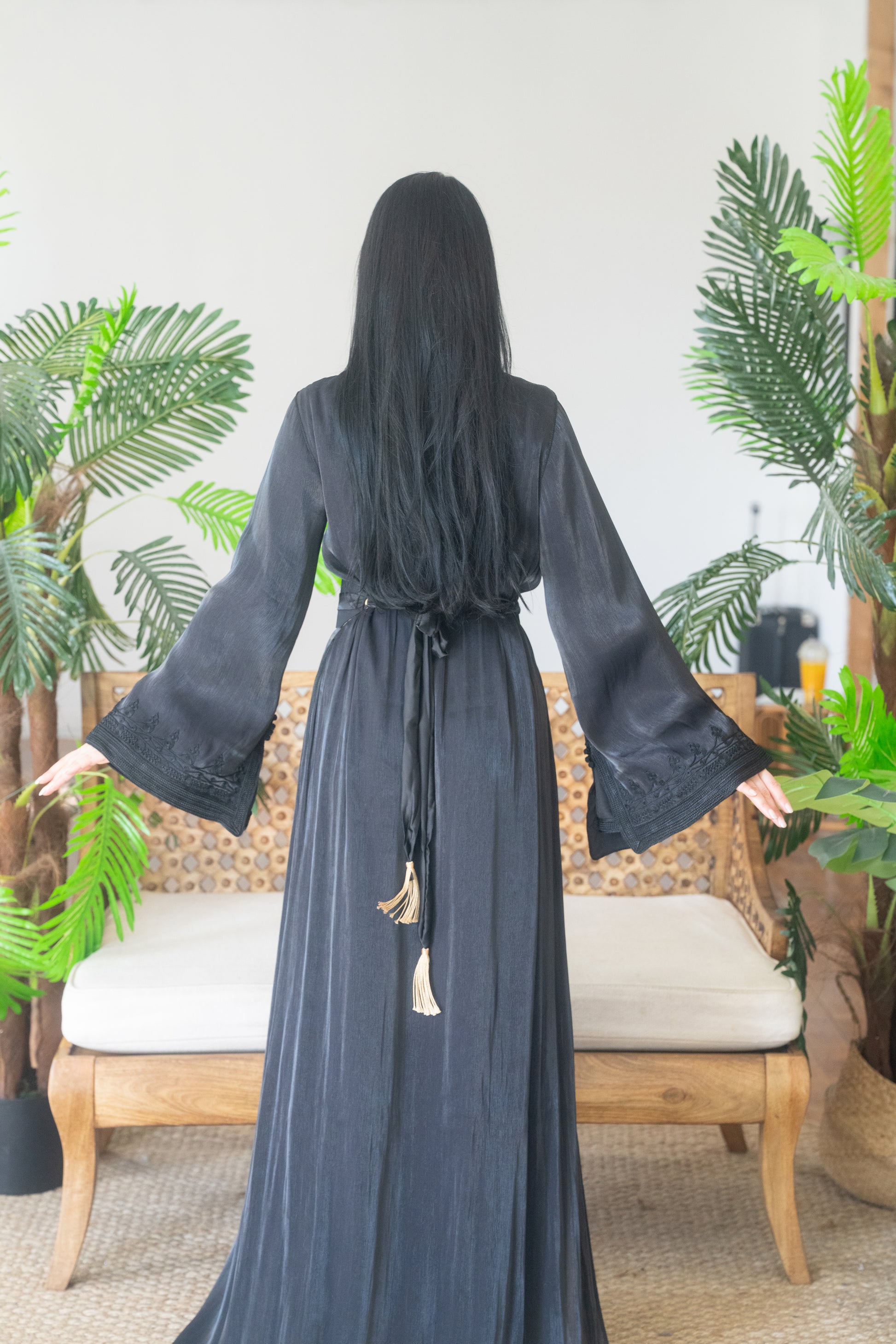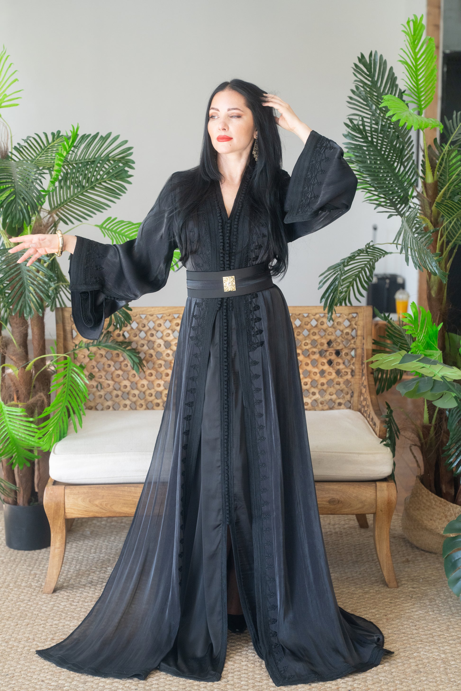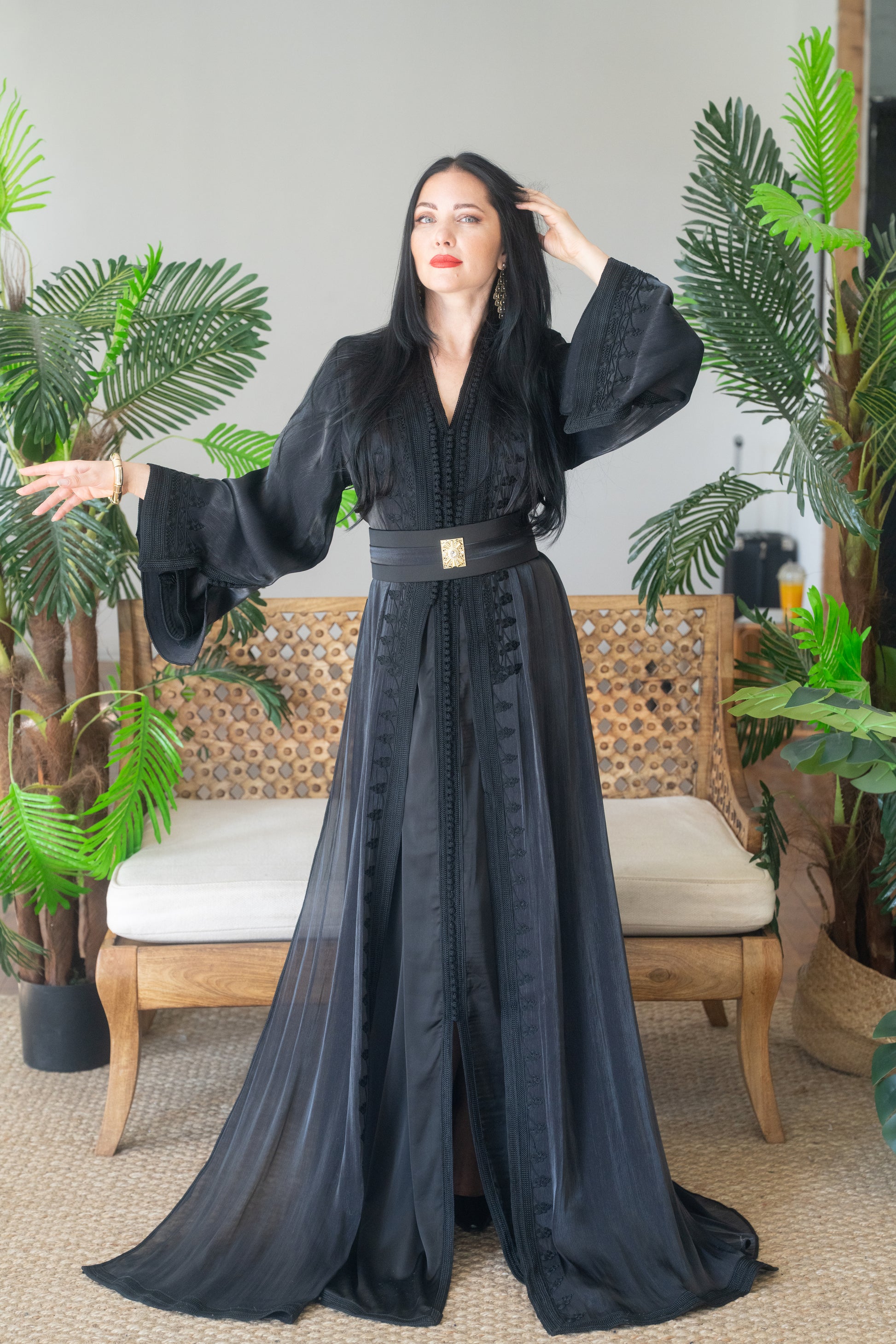 Black Embroidered Organza Kaftan
