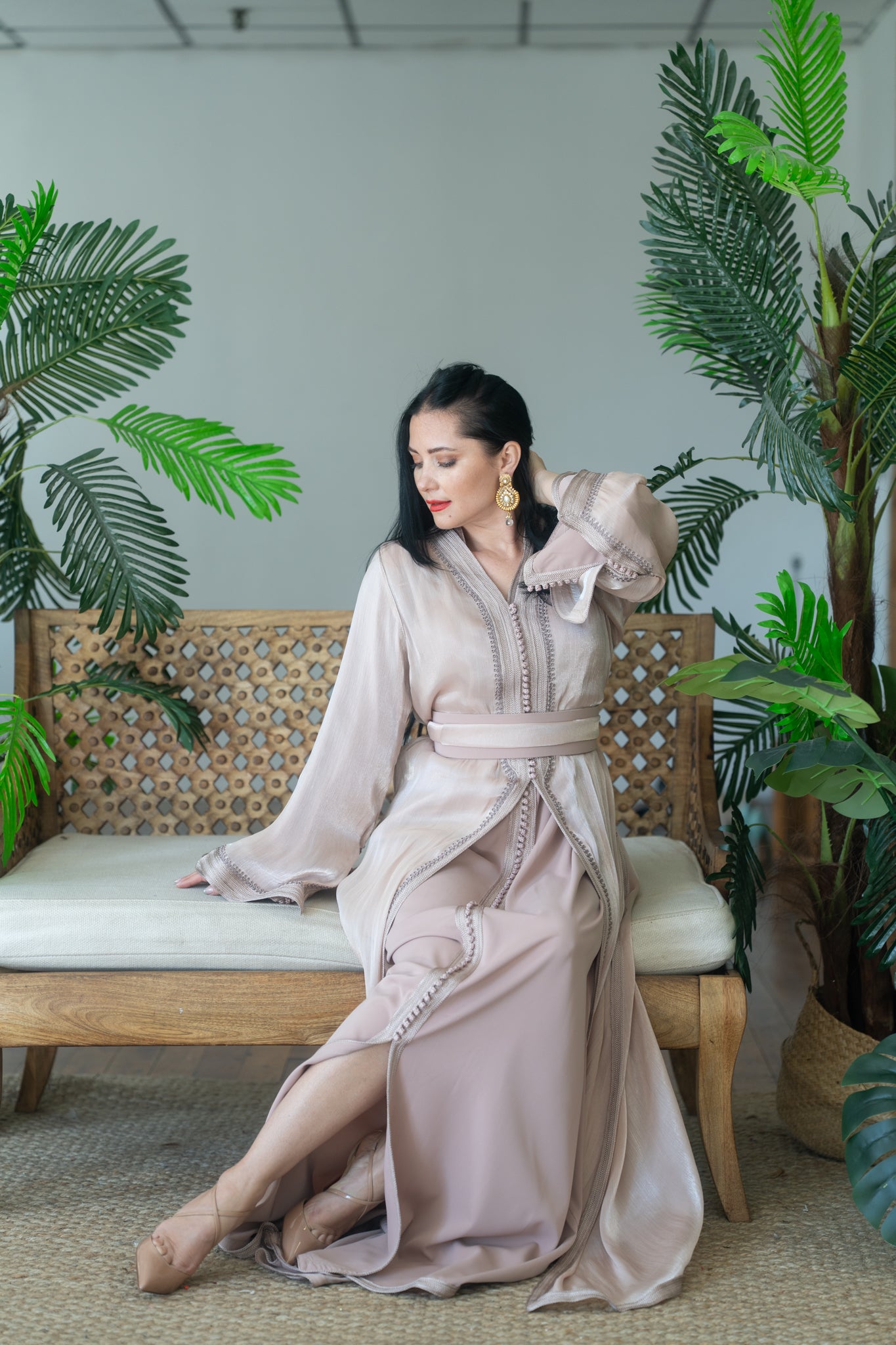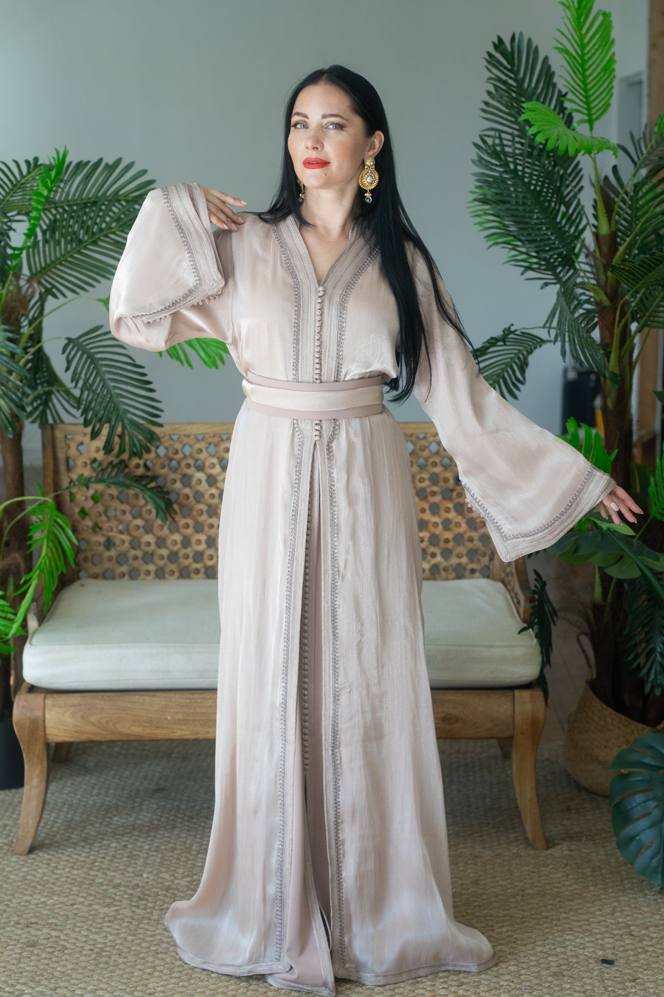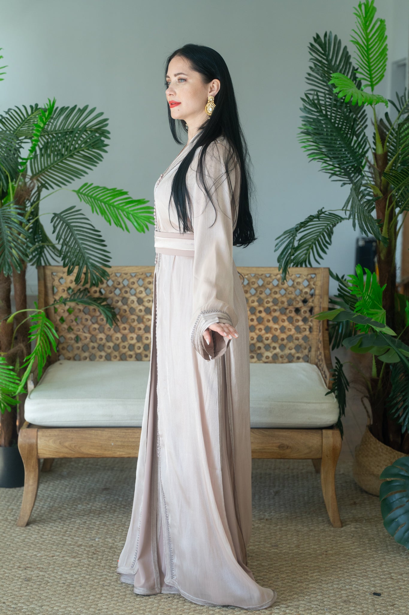 Premium Organza Champagne Embroidered Caftan