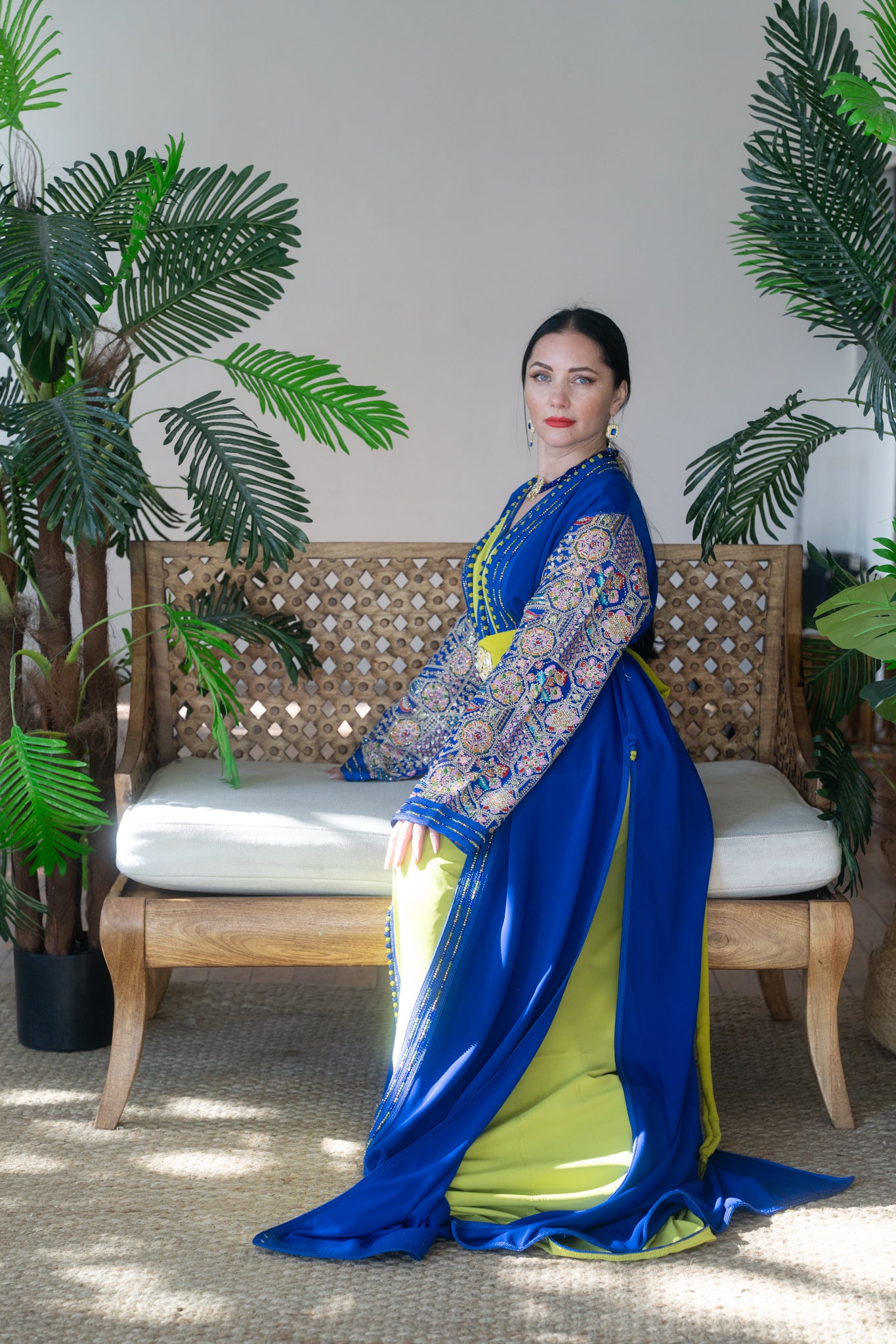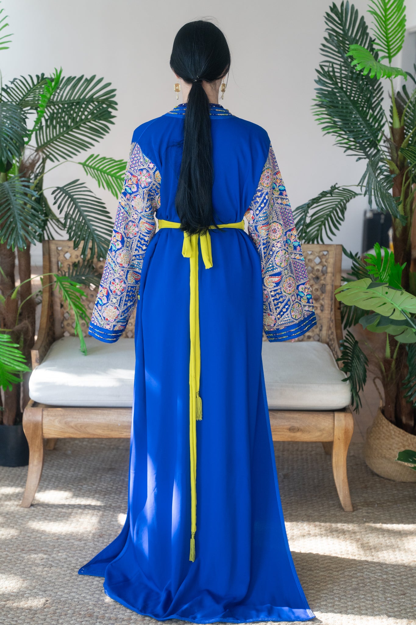 Royal Majestic Blue & Chartreuse Embroidered Caftan