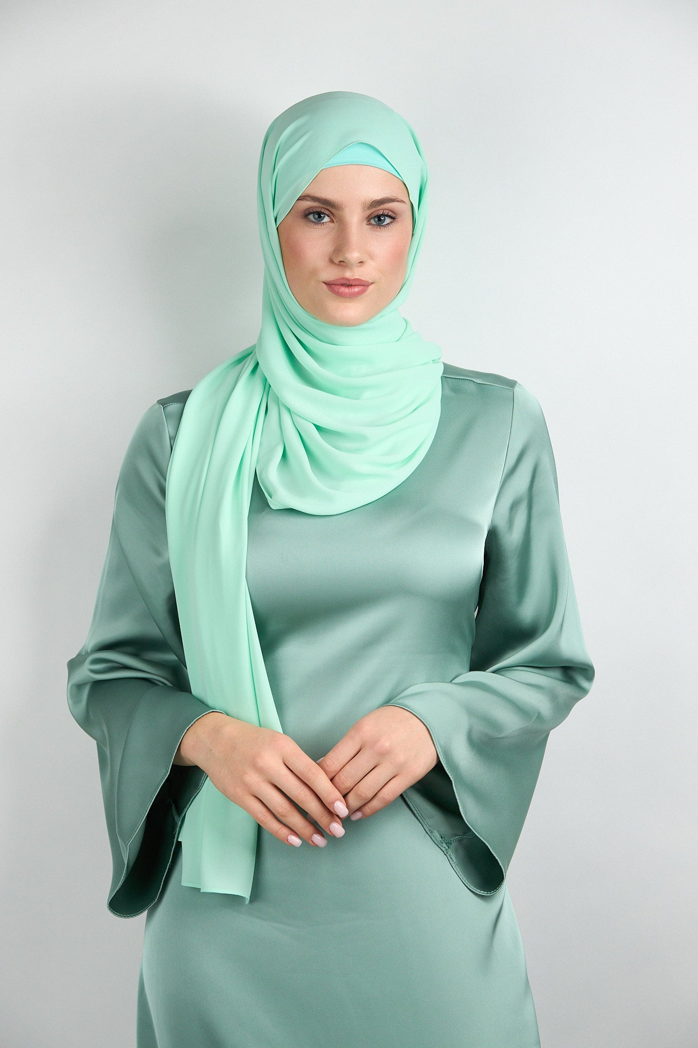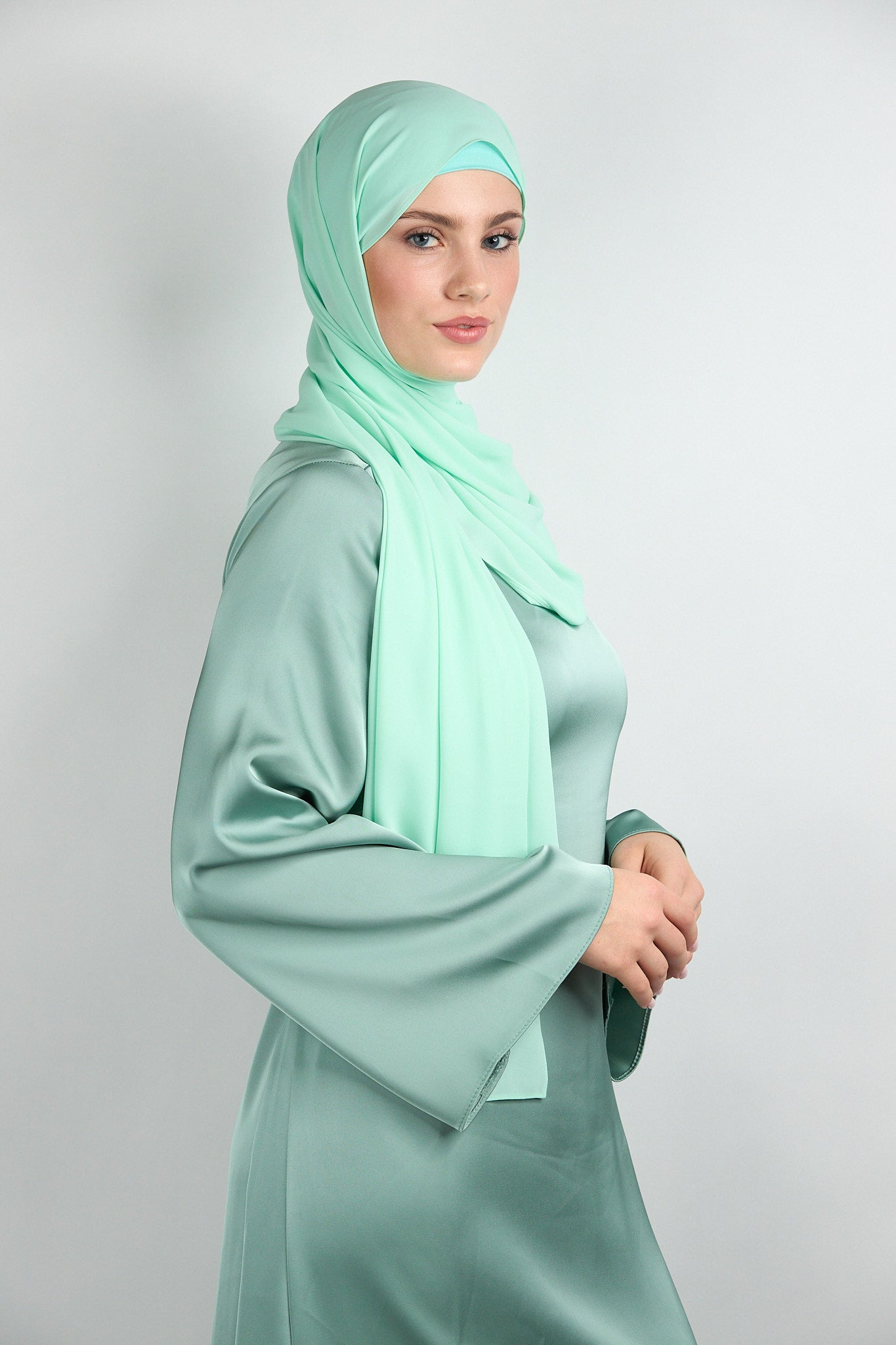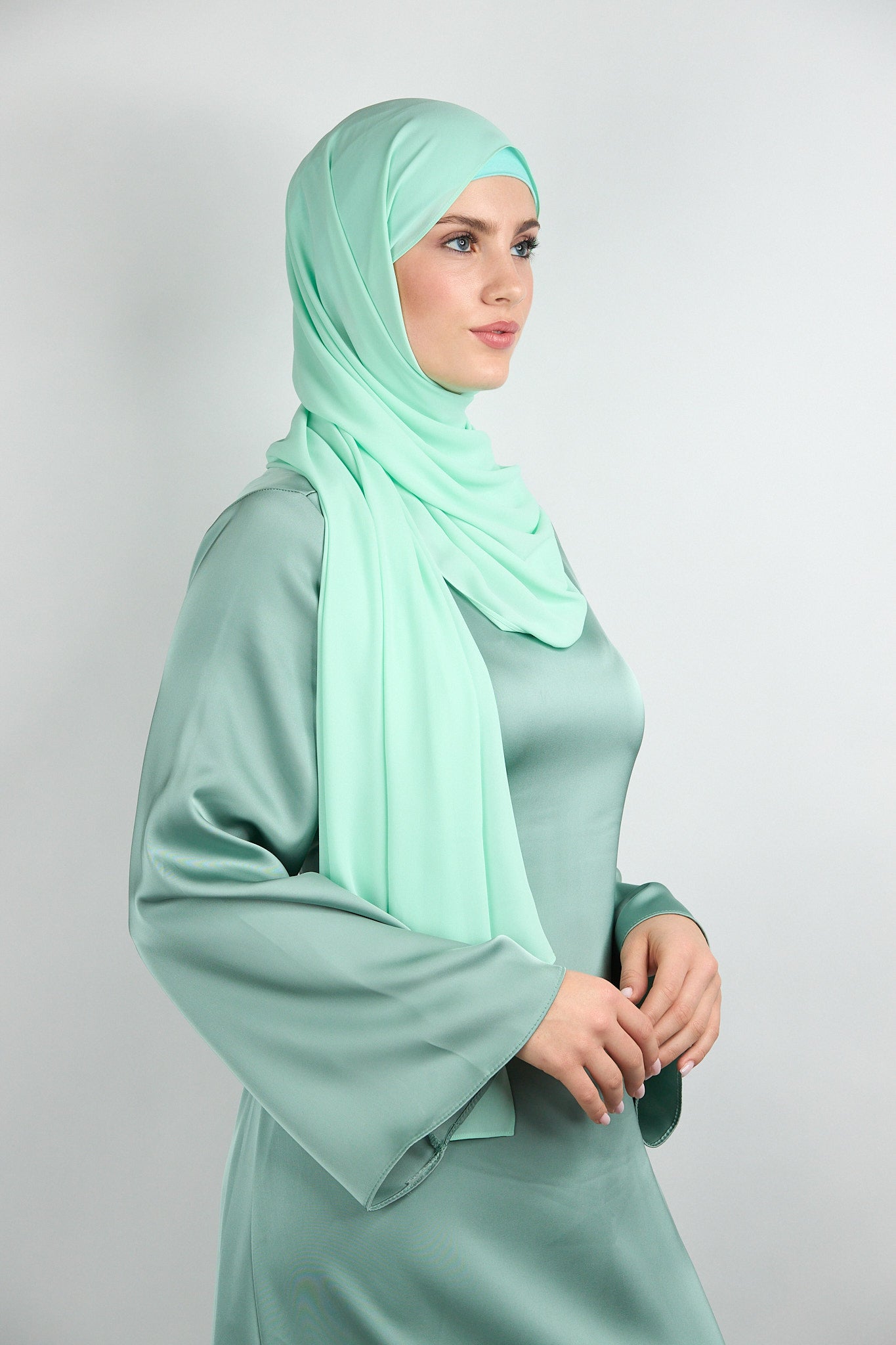 Diamond Chiffon with Matching UNdercap Light Green
