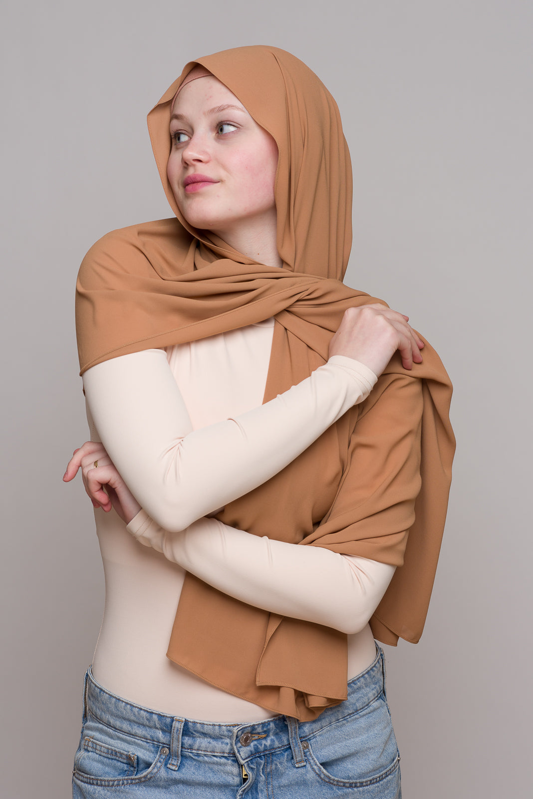 PECAN BROWN DIAMOND CHIFFON HIJAB W/ MATCHING UNDERCAP