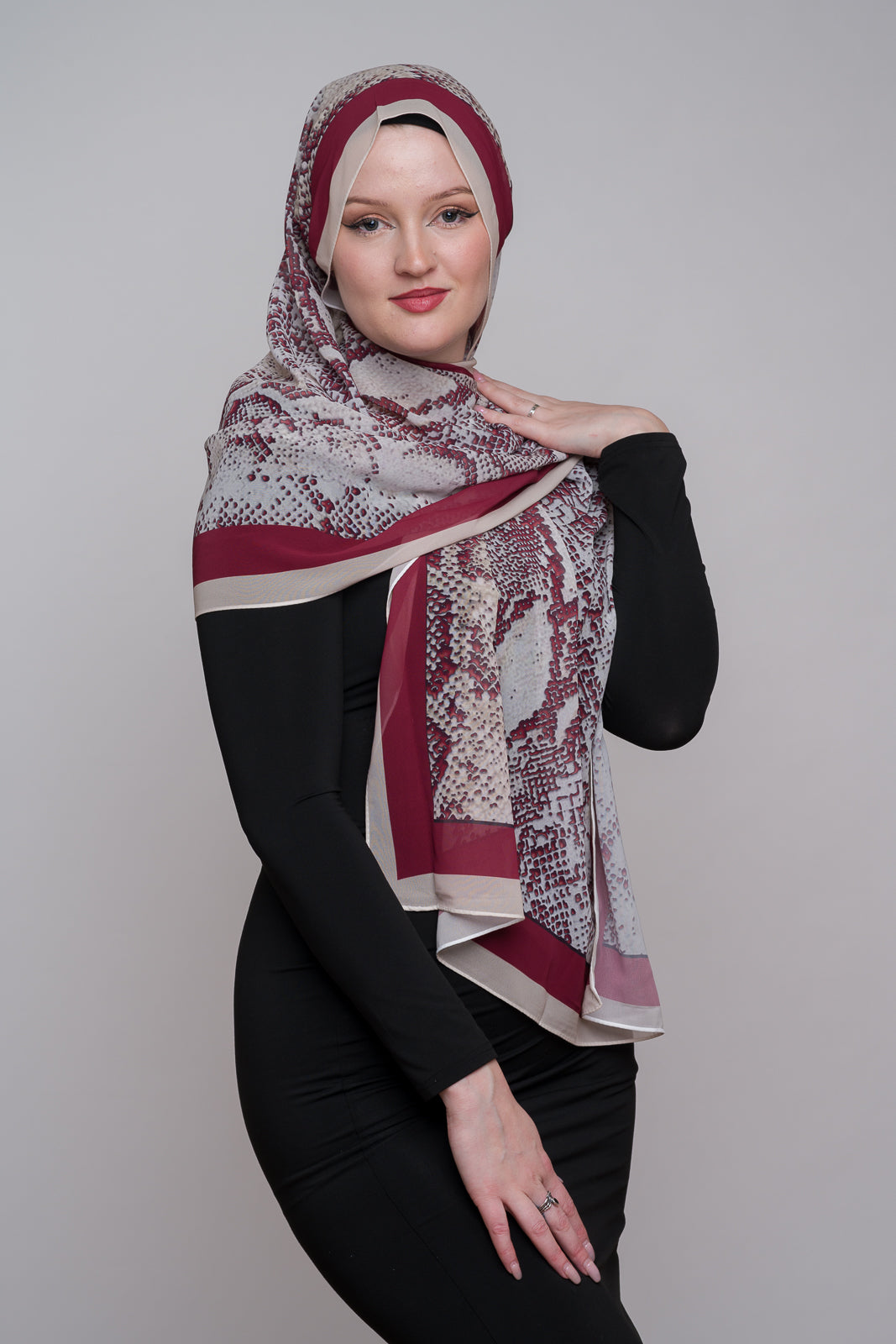 Pohutukawa Snakeskin Printed Chiffon Hijab