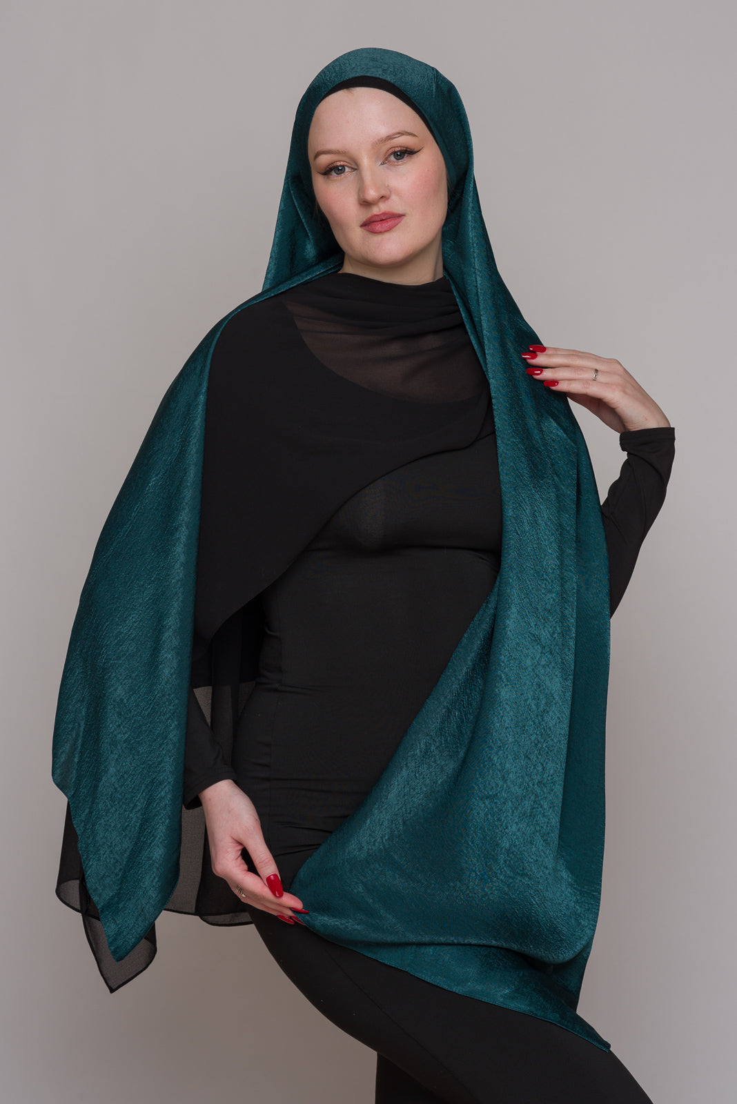 STORM GREEN FRENCH SATIN HIJAB