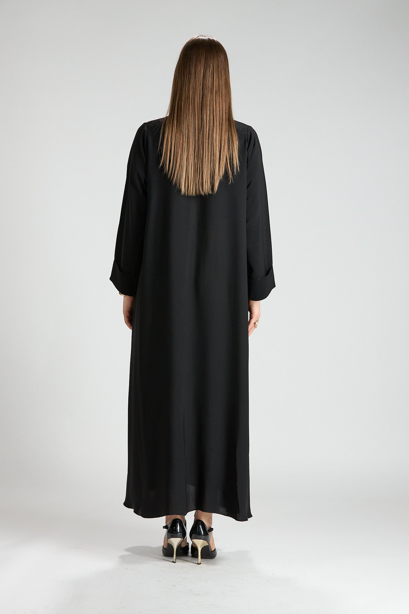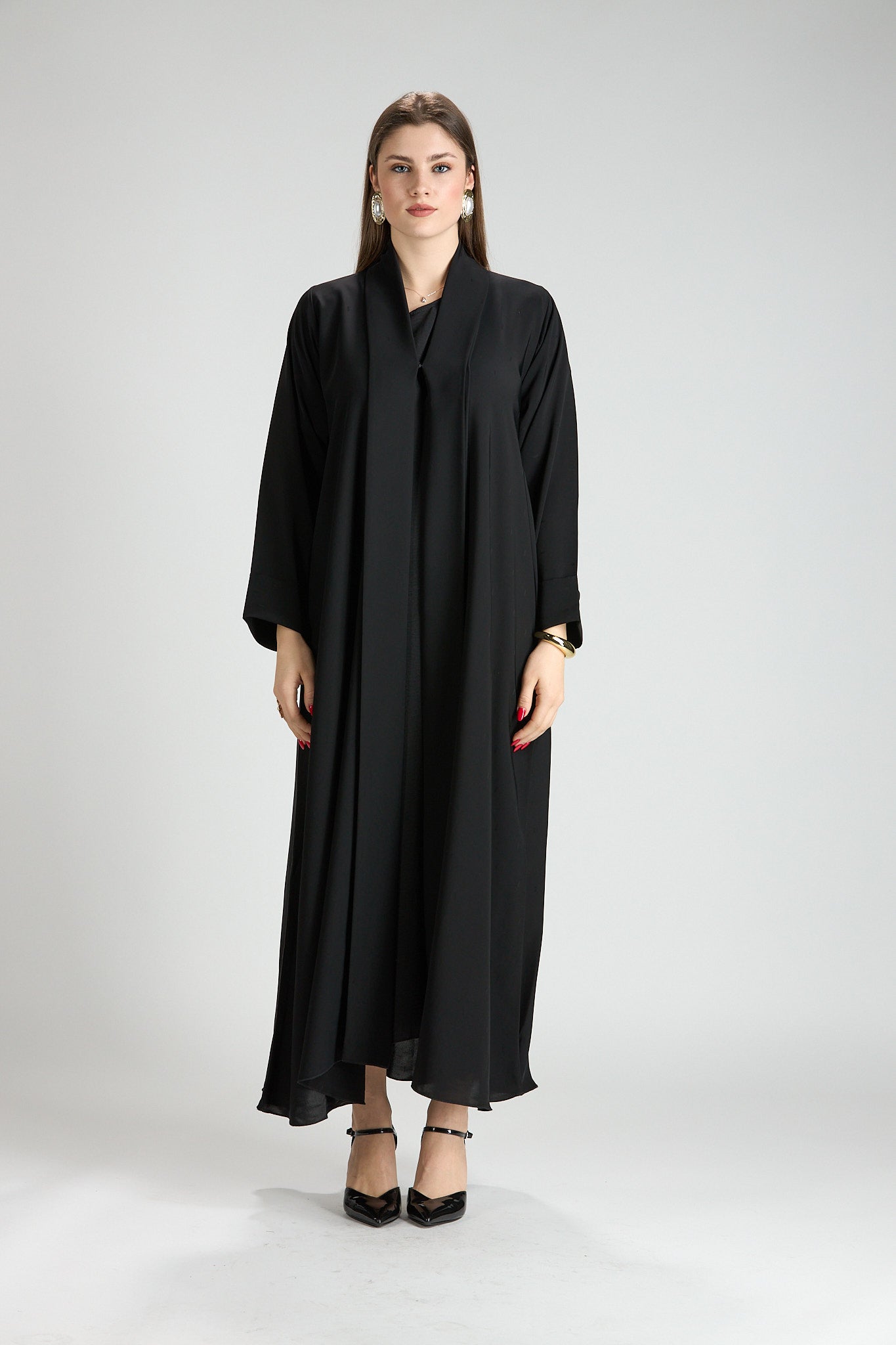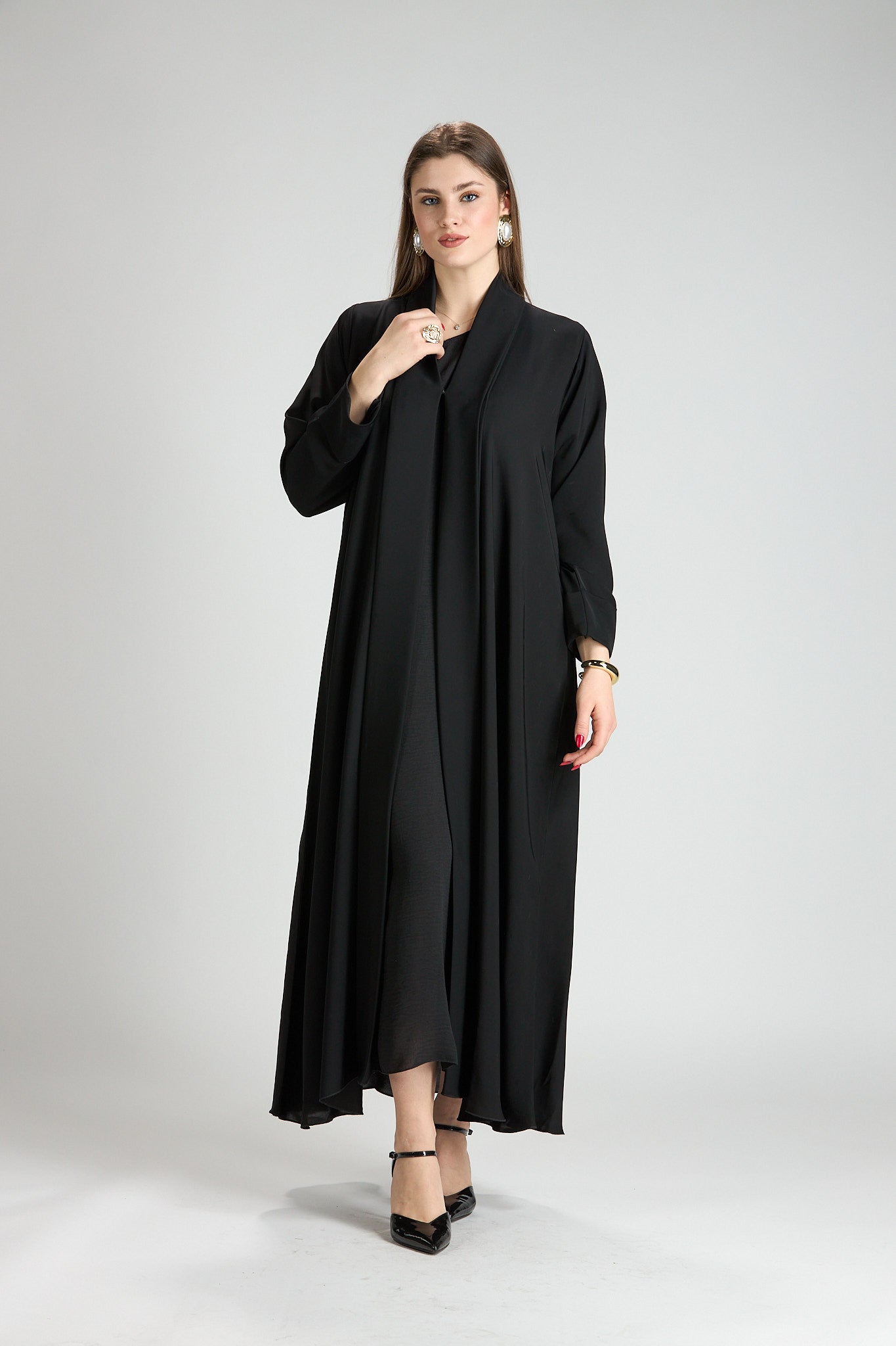 Gracefully understated with a modern touch, The Noir Cascade Abaya is defined by its flowing layers and soft, cascading front detail. Crafted from a lightweight, airy fabric, this abaya drapes effortlessly, creating movement and dimension while maintaining a clean, modest silhouette.
