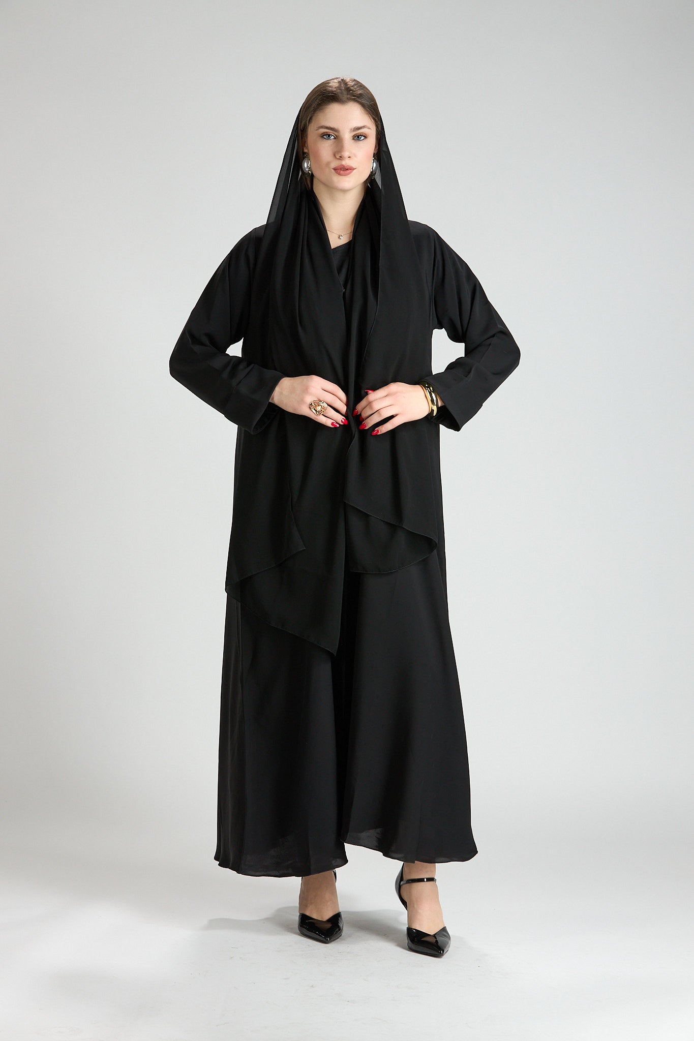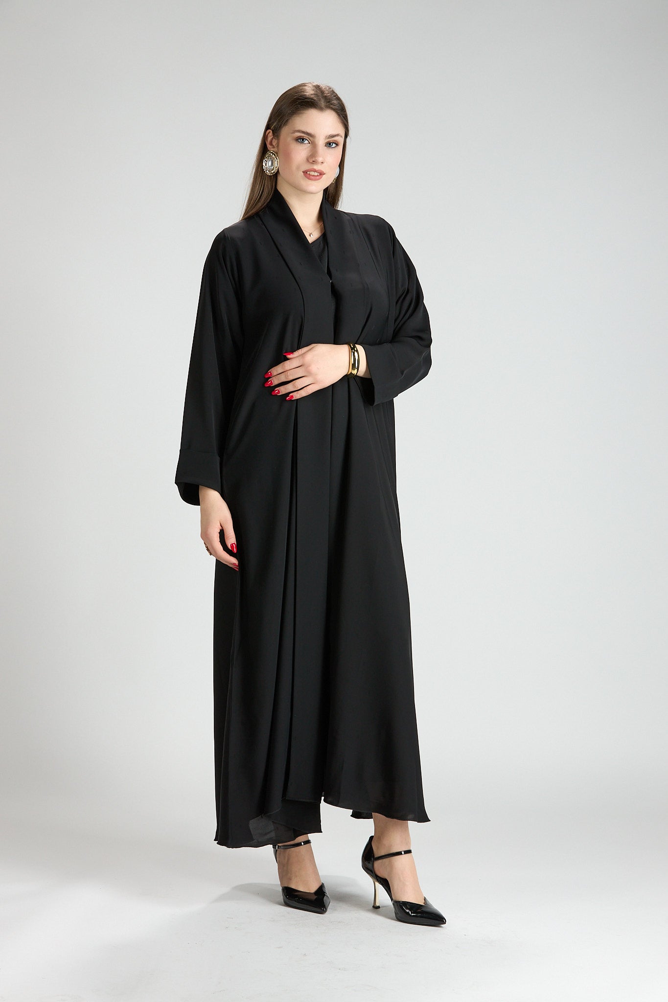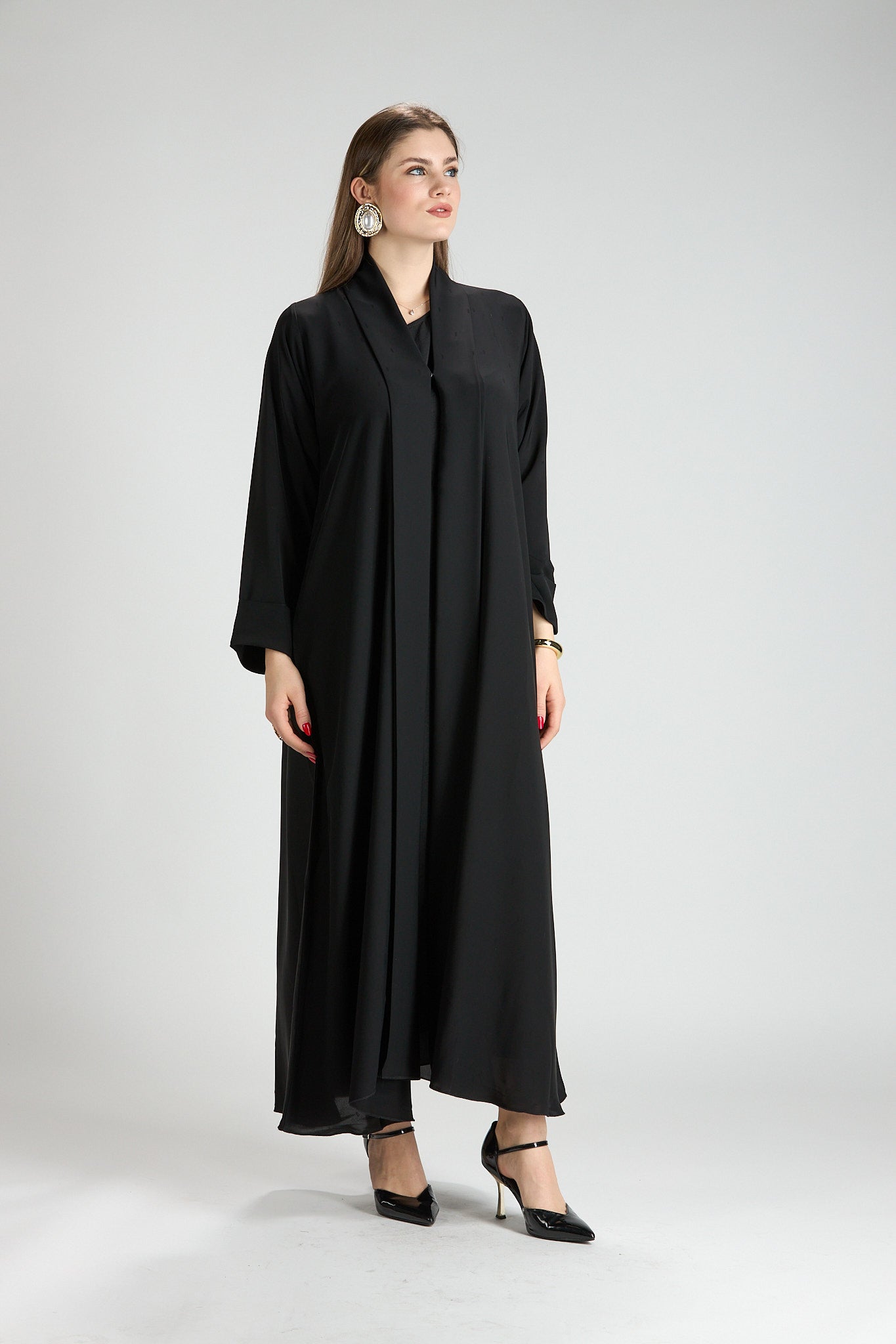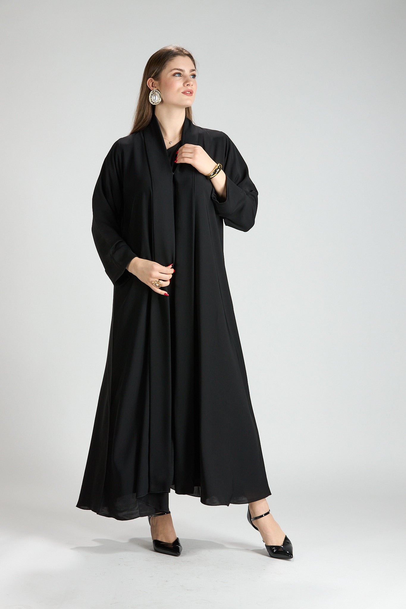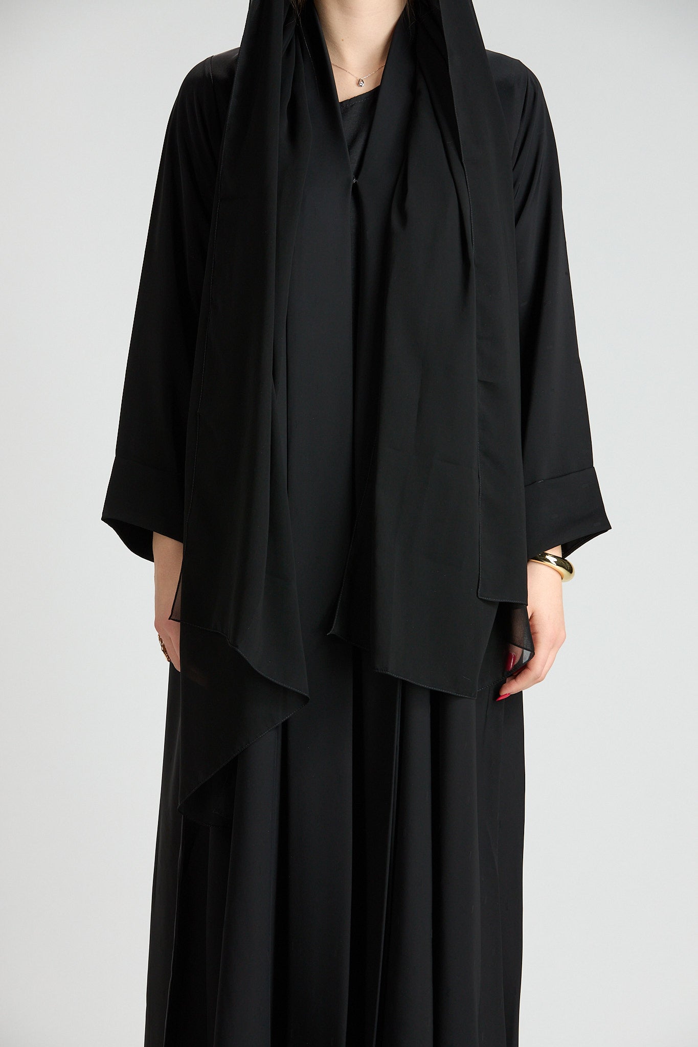Opaline Black Abaya 3 Pieces Japanese Silk