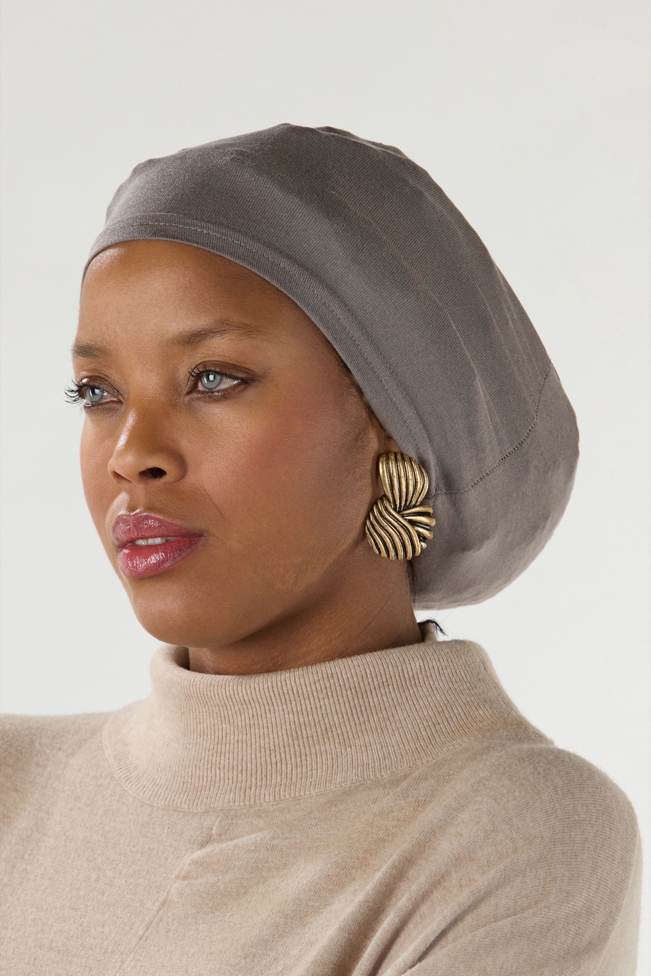 ASH GRAY modal cotton hijab, offering a luxurious yet practical choice for everyday and formal wear. The blend of modal and cotton provides a lightweight, breathable fabric with a smooth, silky finish. The elegant taupe color gives this hijab a neutral and sophisticated appeal, perfect for complementing a wide variety of outfits. Its flowy, soft texture ensures a comfortable fit, while its durability makes it a staple piece in any modest wardrobe.