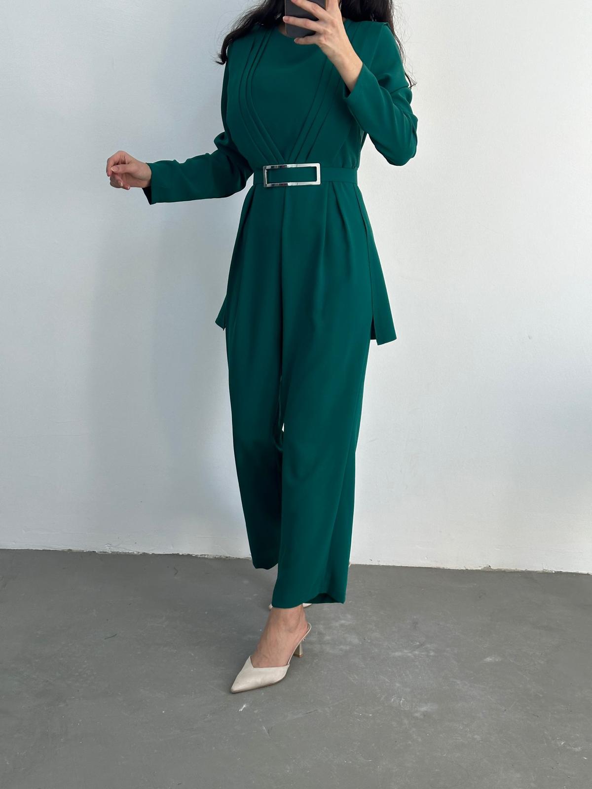 GREEN RECTANGULAR BUCKLE JUMPSUIT