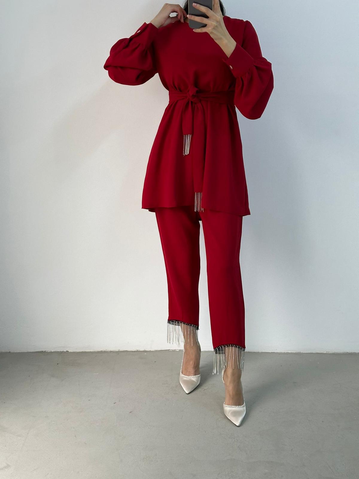 Your Modest Style with Menatique's Modest Tie Waist Two-Piece Suit. This ensemble seamlessly blends timeless elegance with modern versatility, making it the perfect choice for any occasion.