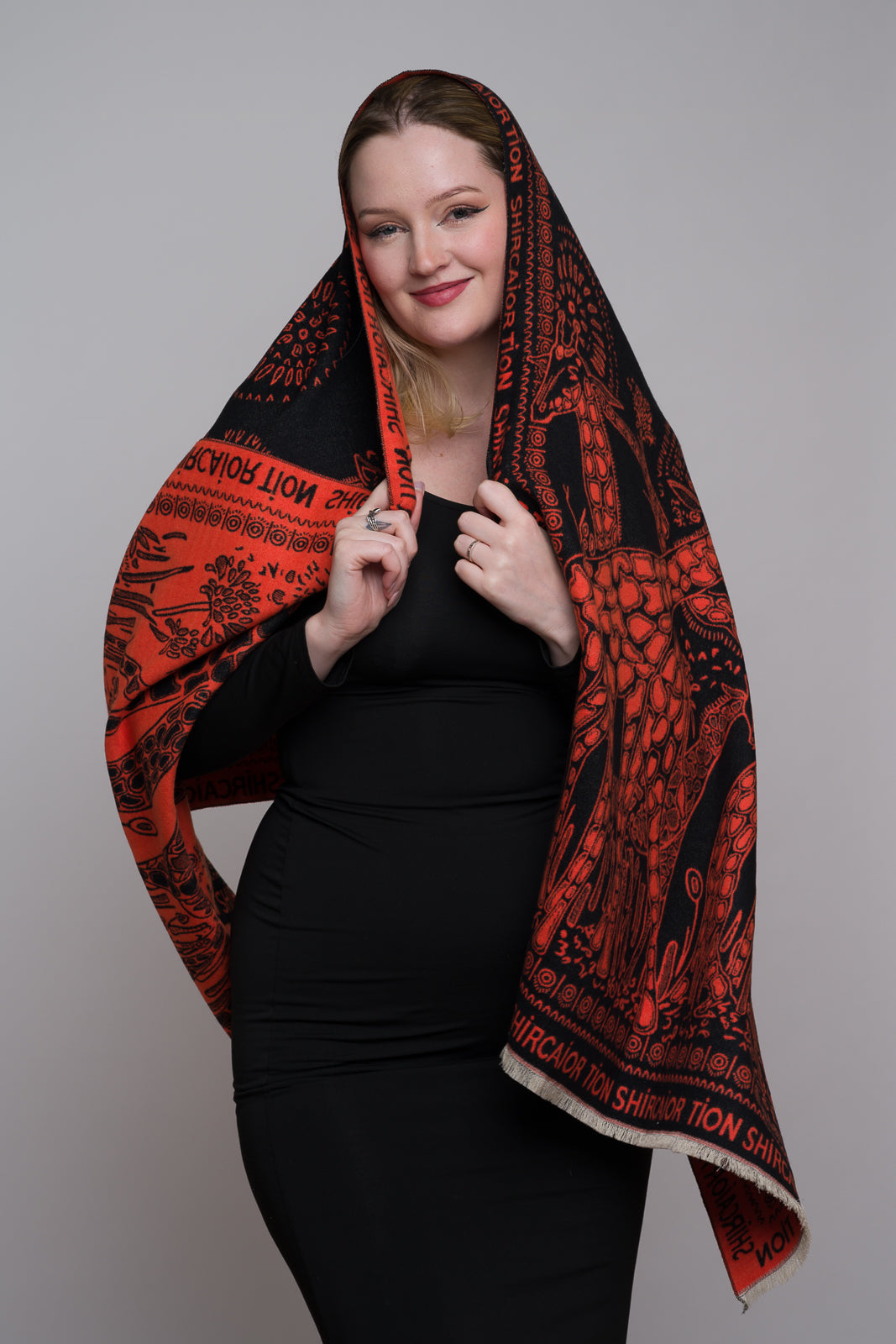 SAFARI PRINT SHAWAL (BLACK/RED)