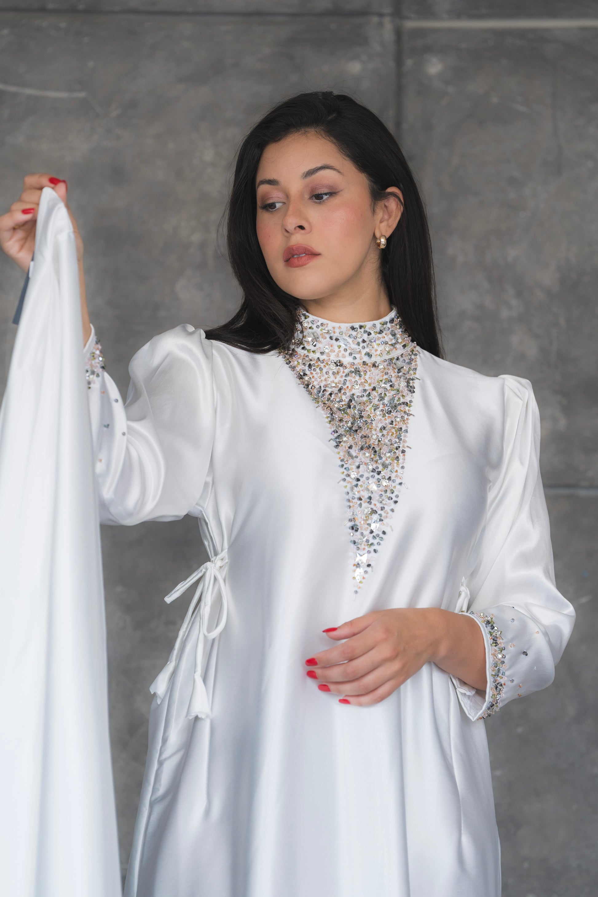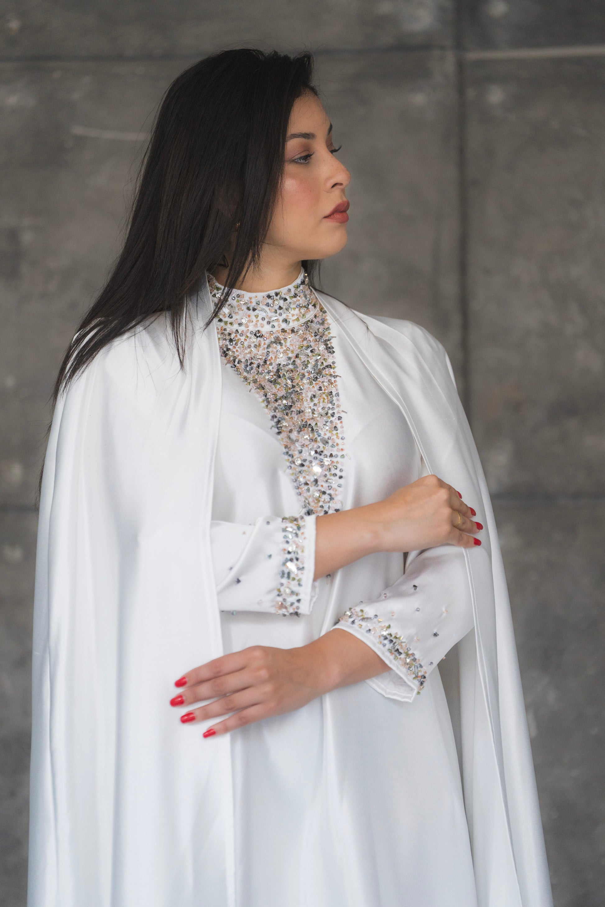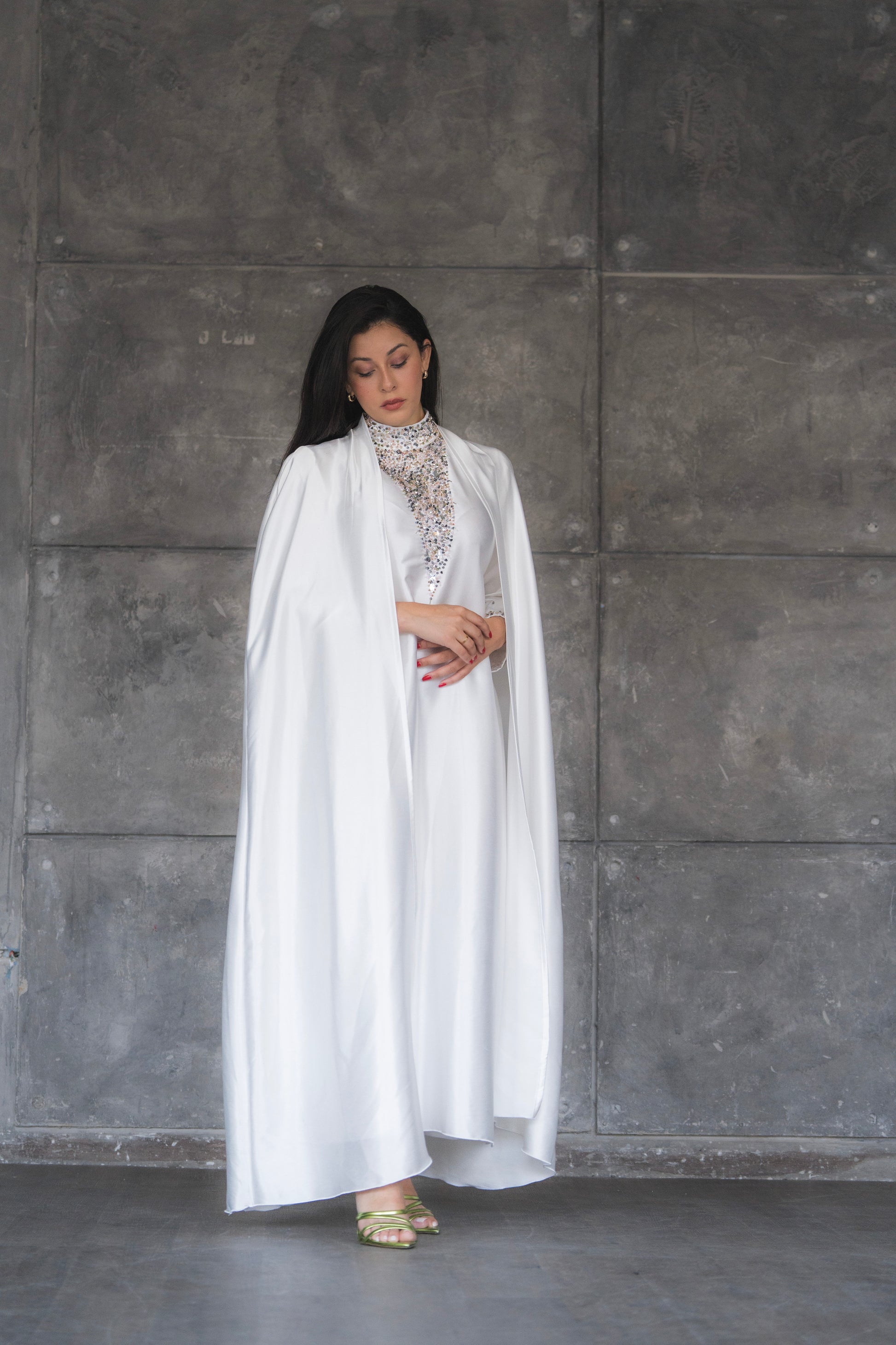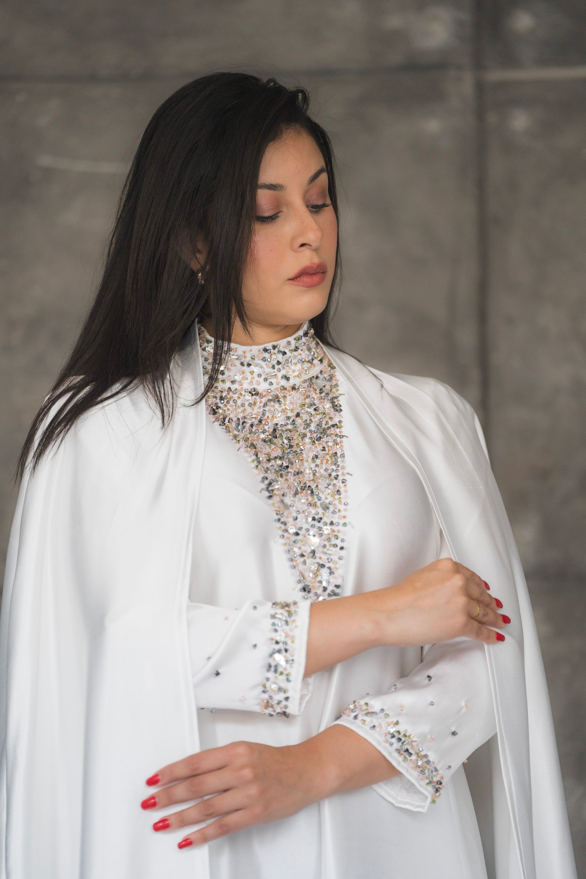 Fatima White Silk 2 Pieces Abaya Dress  Code 001