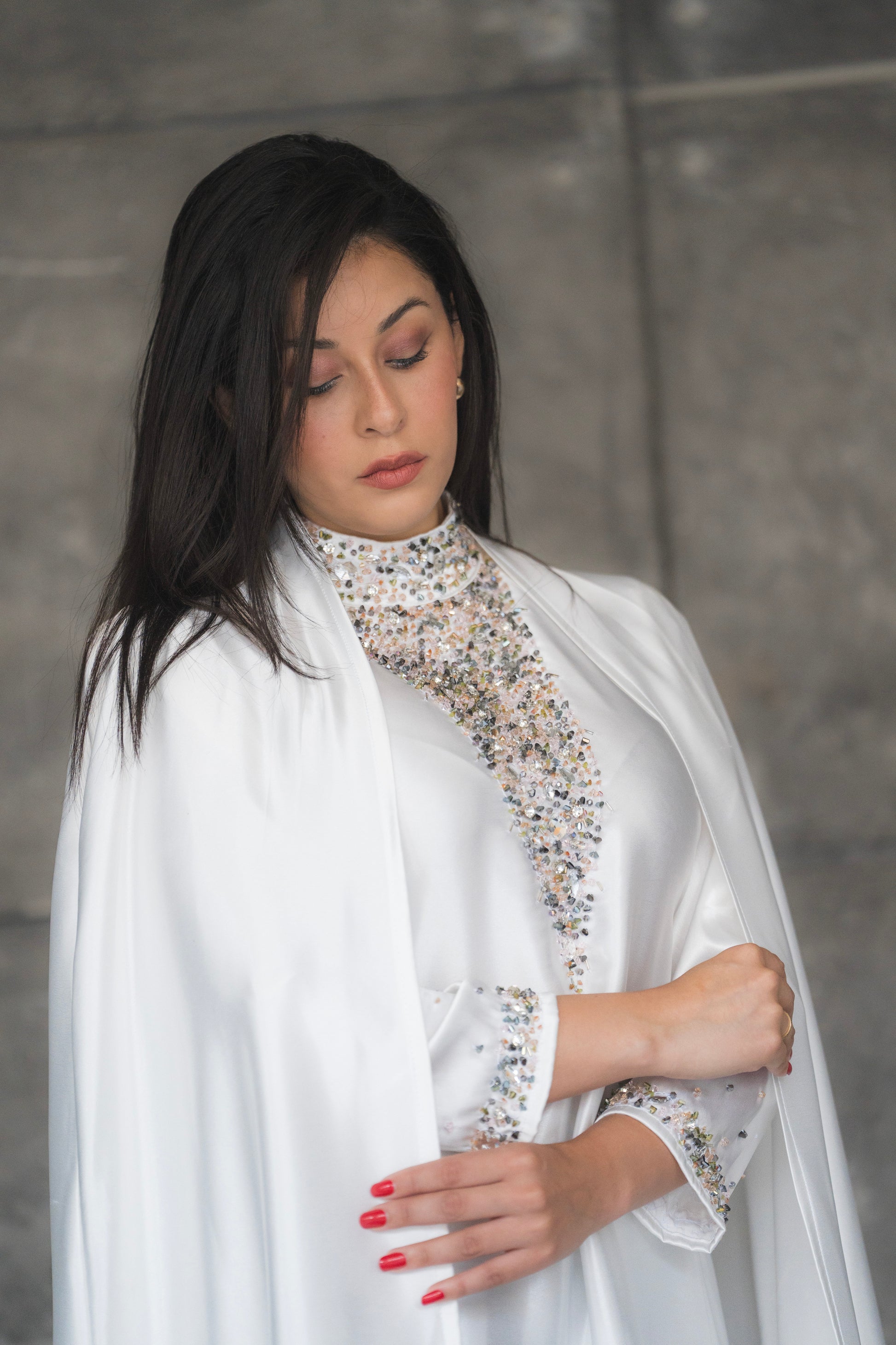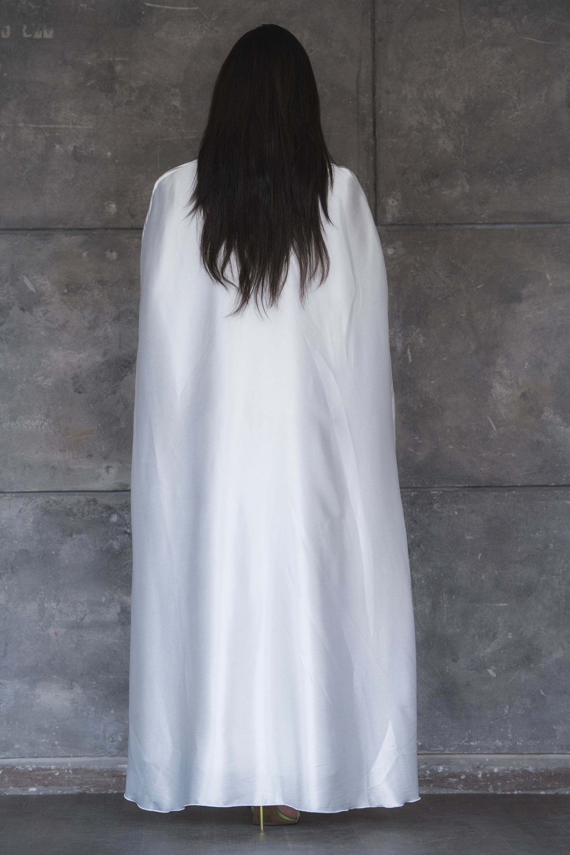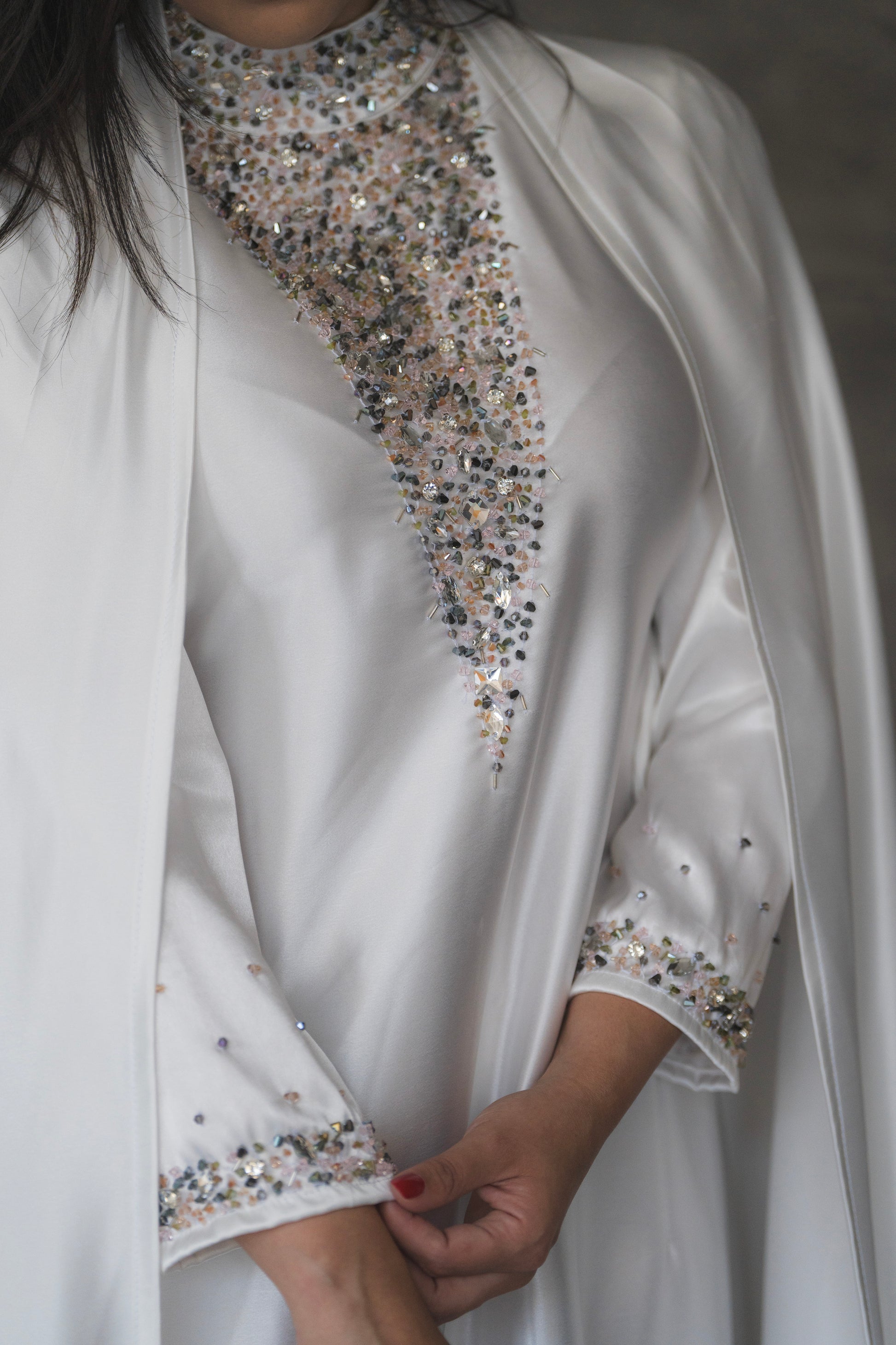 Fatima White Silk 2 Pieces Abaya Dress Code 001
