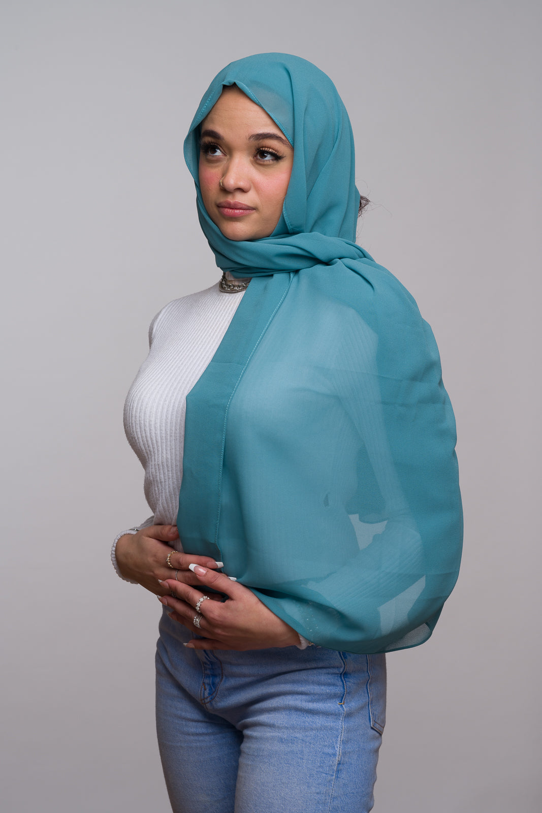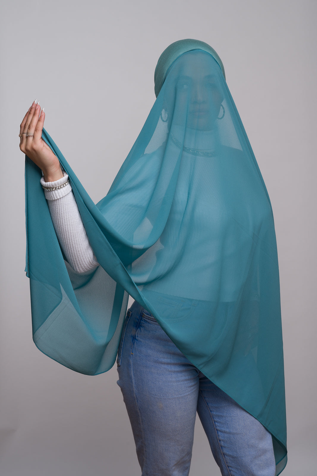 MUTED BLUE CHIFFON HIJAB W/ ATTACHED UNDERCAP