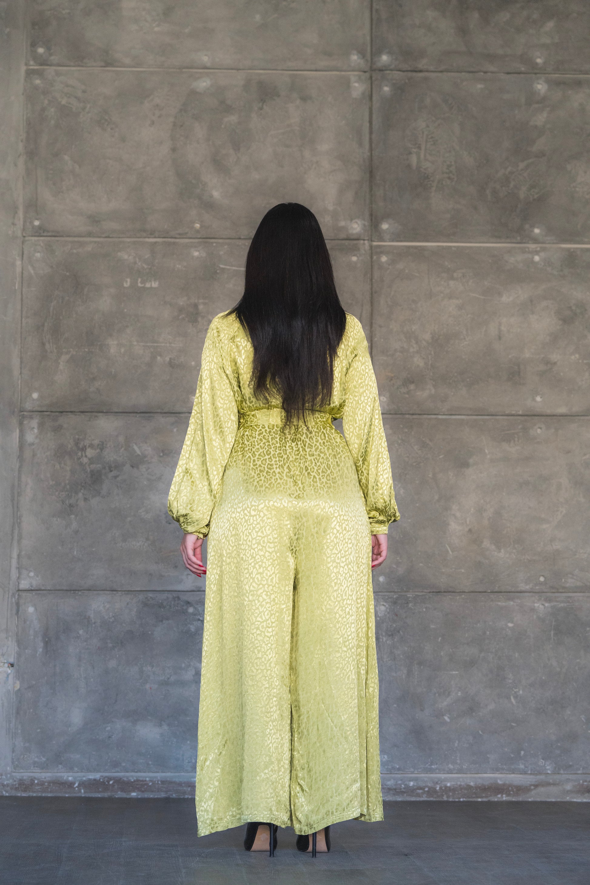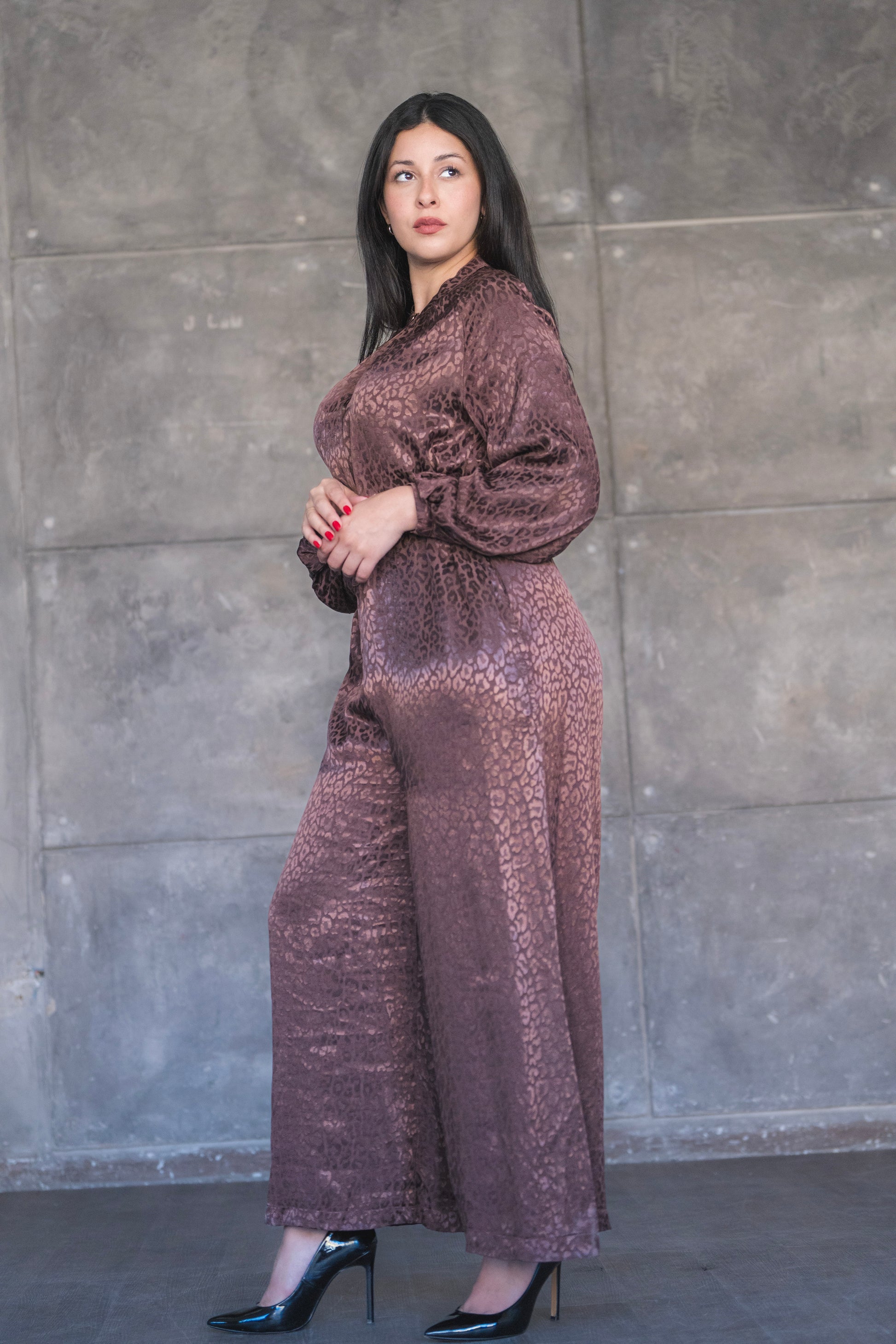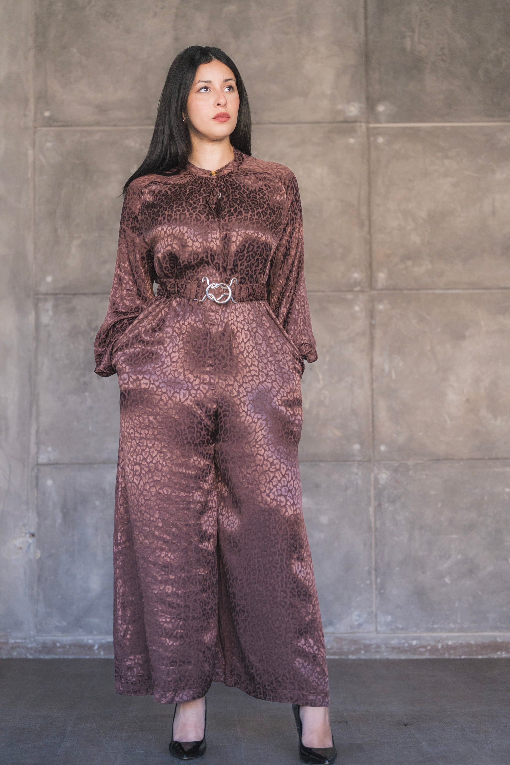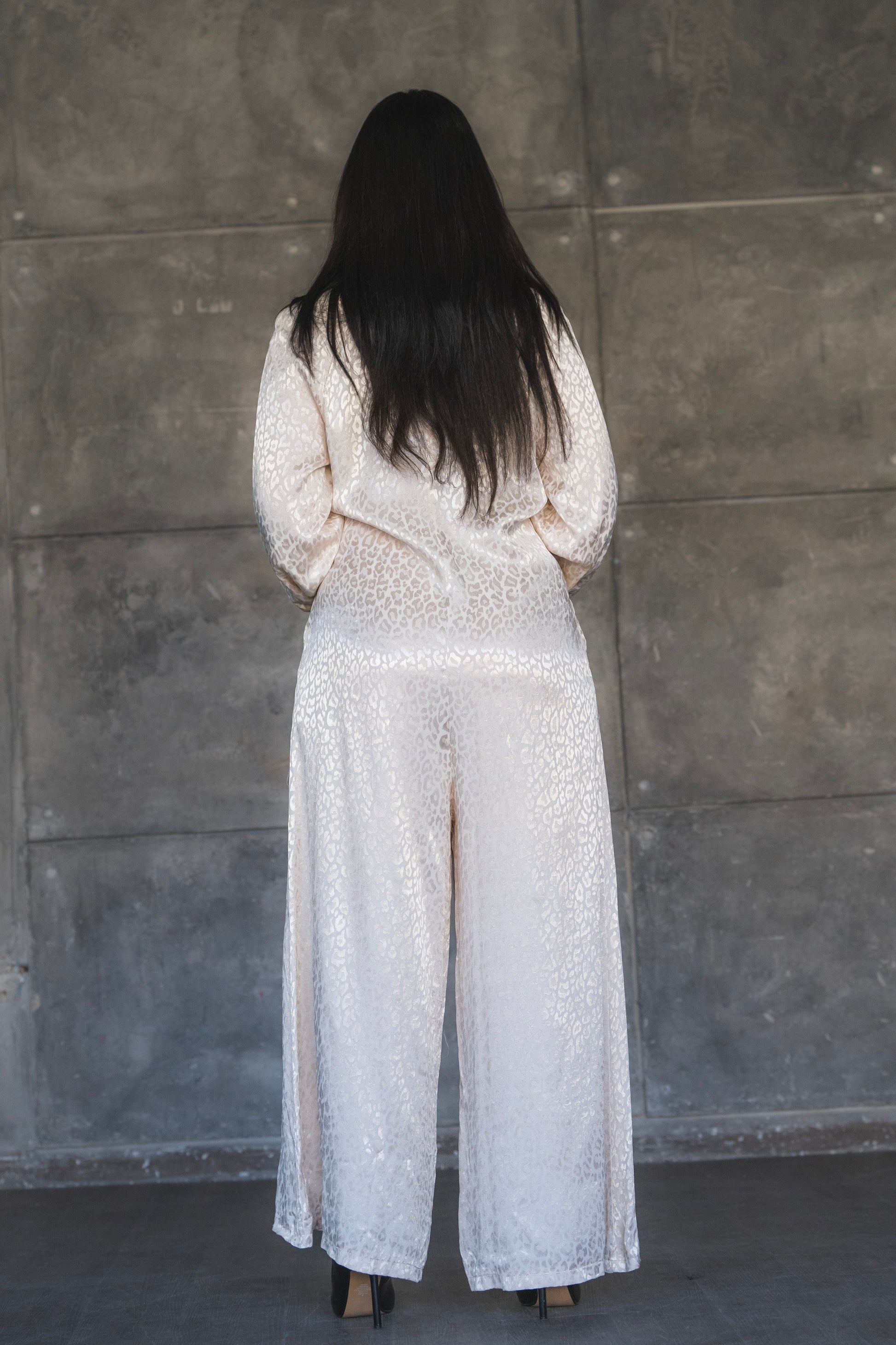 Satin Jacquard Leopard Print Wide-Leg Jumpsuit