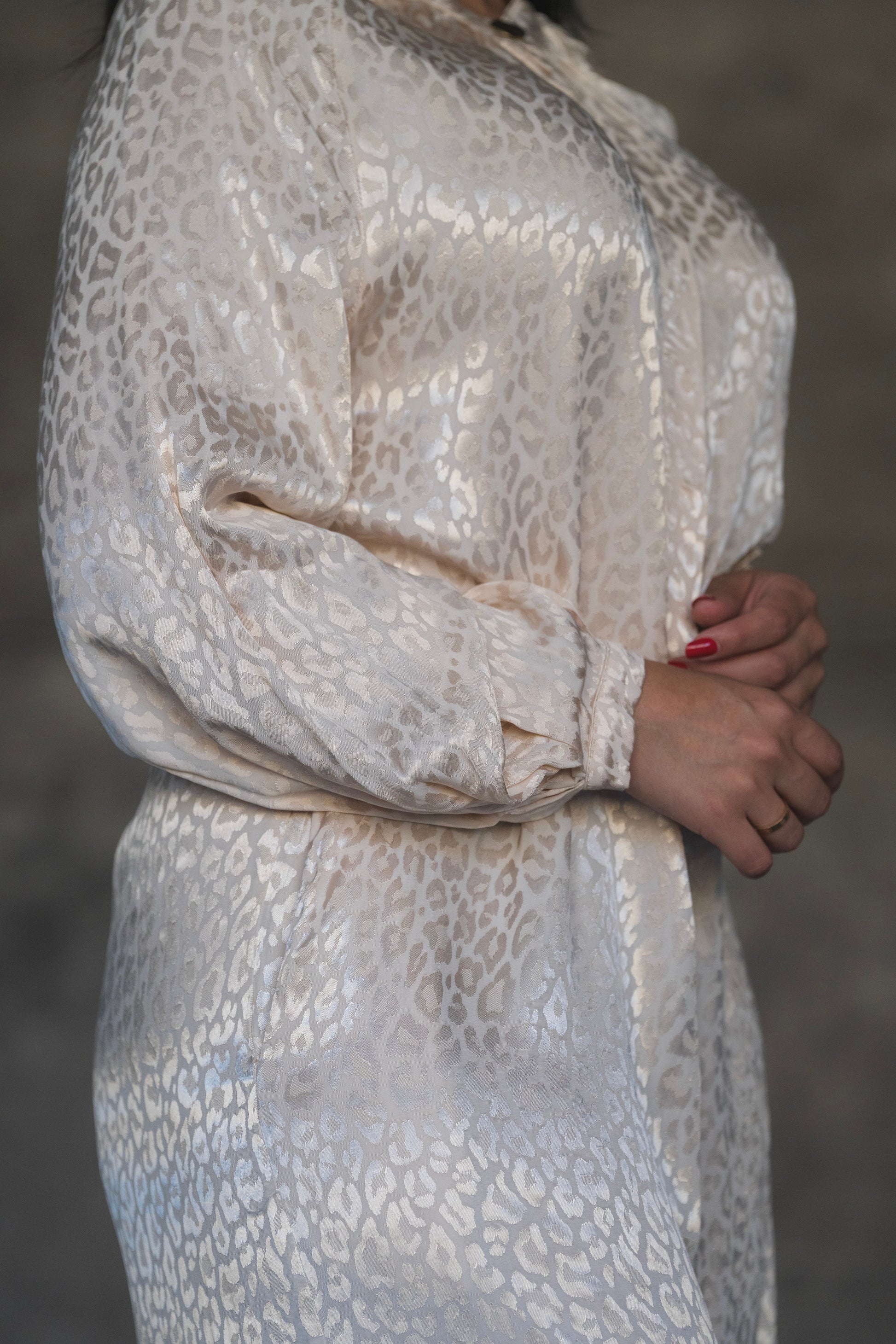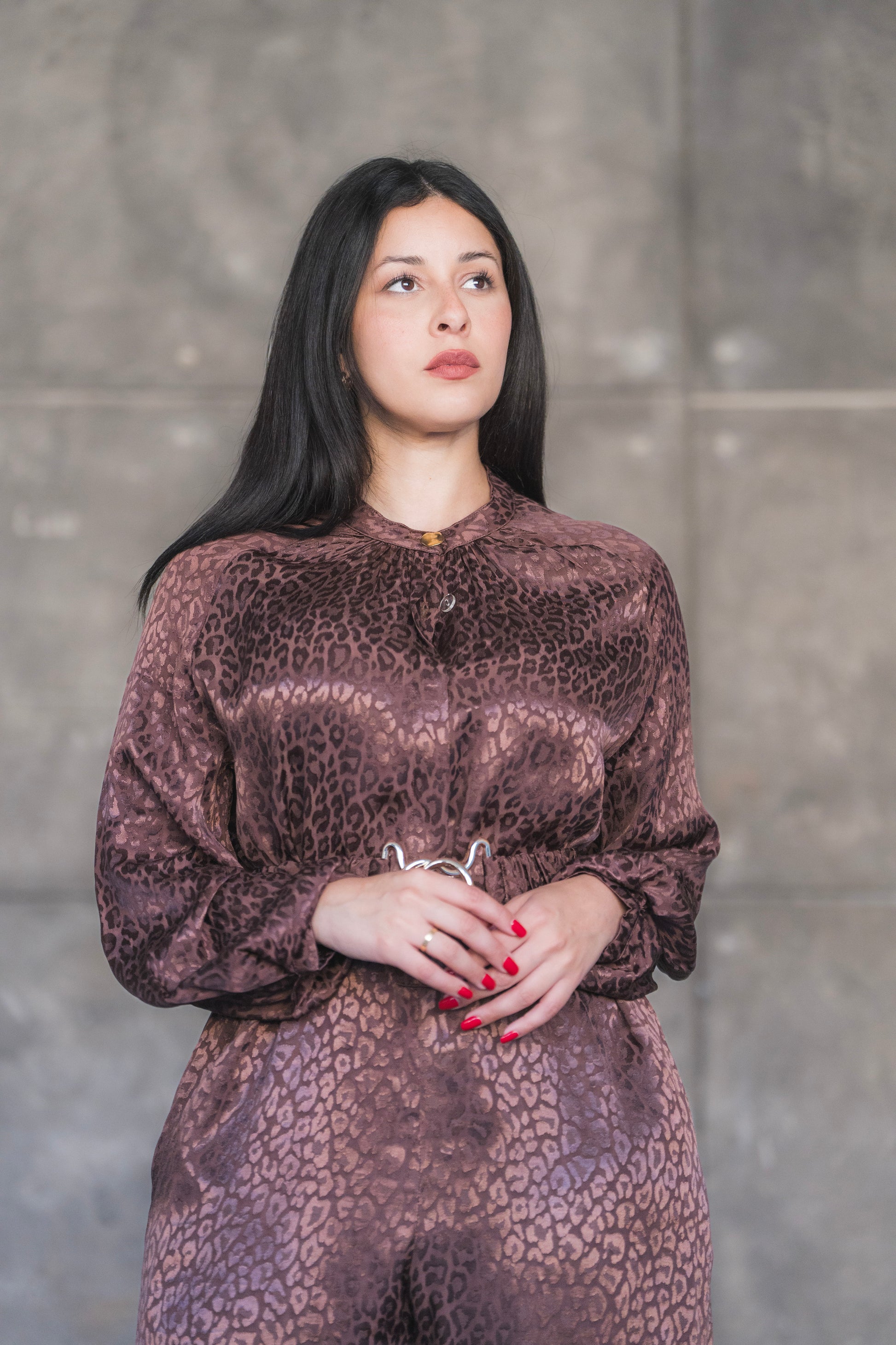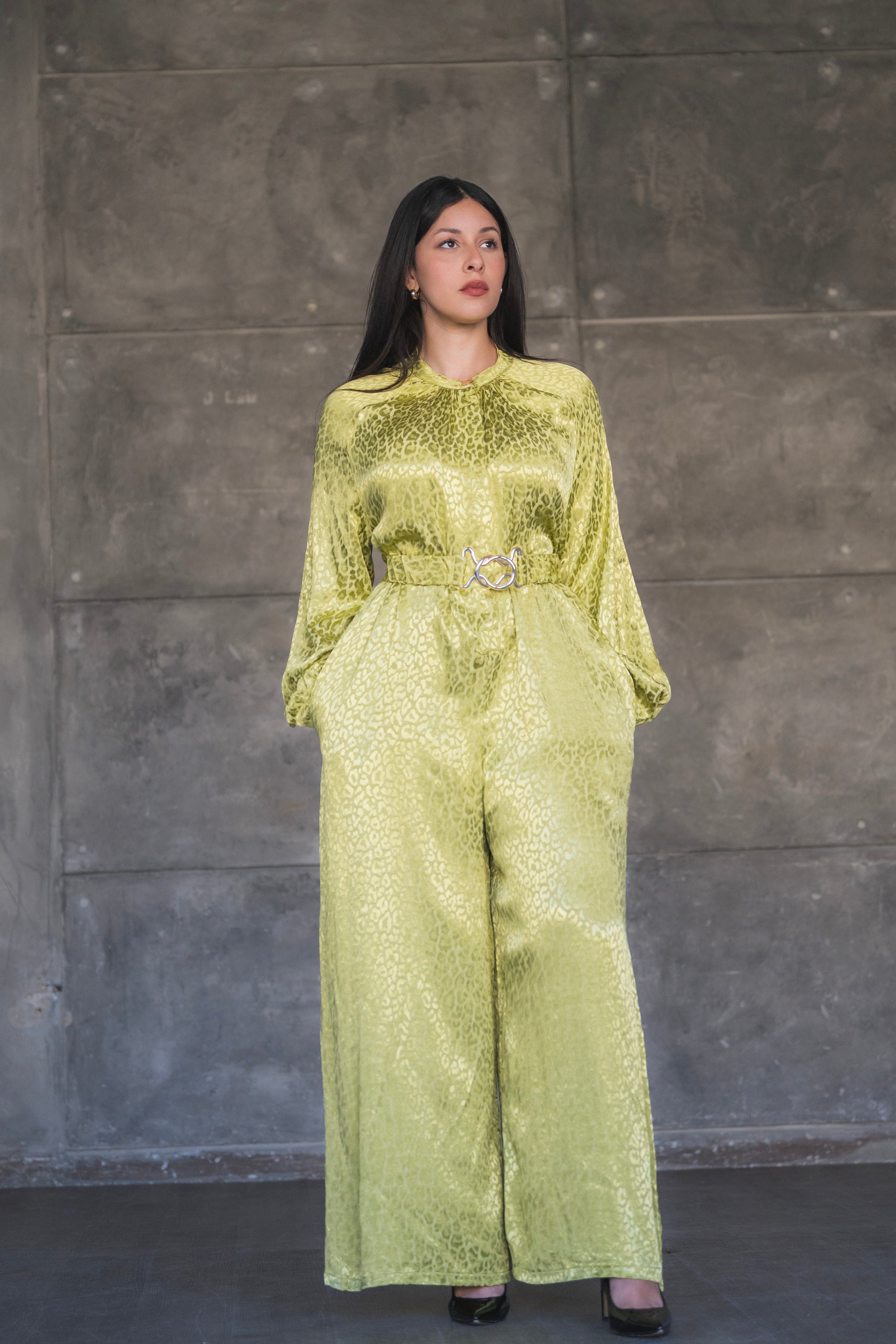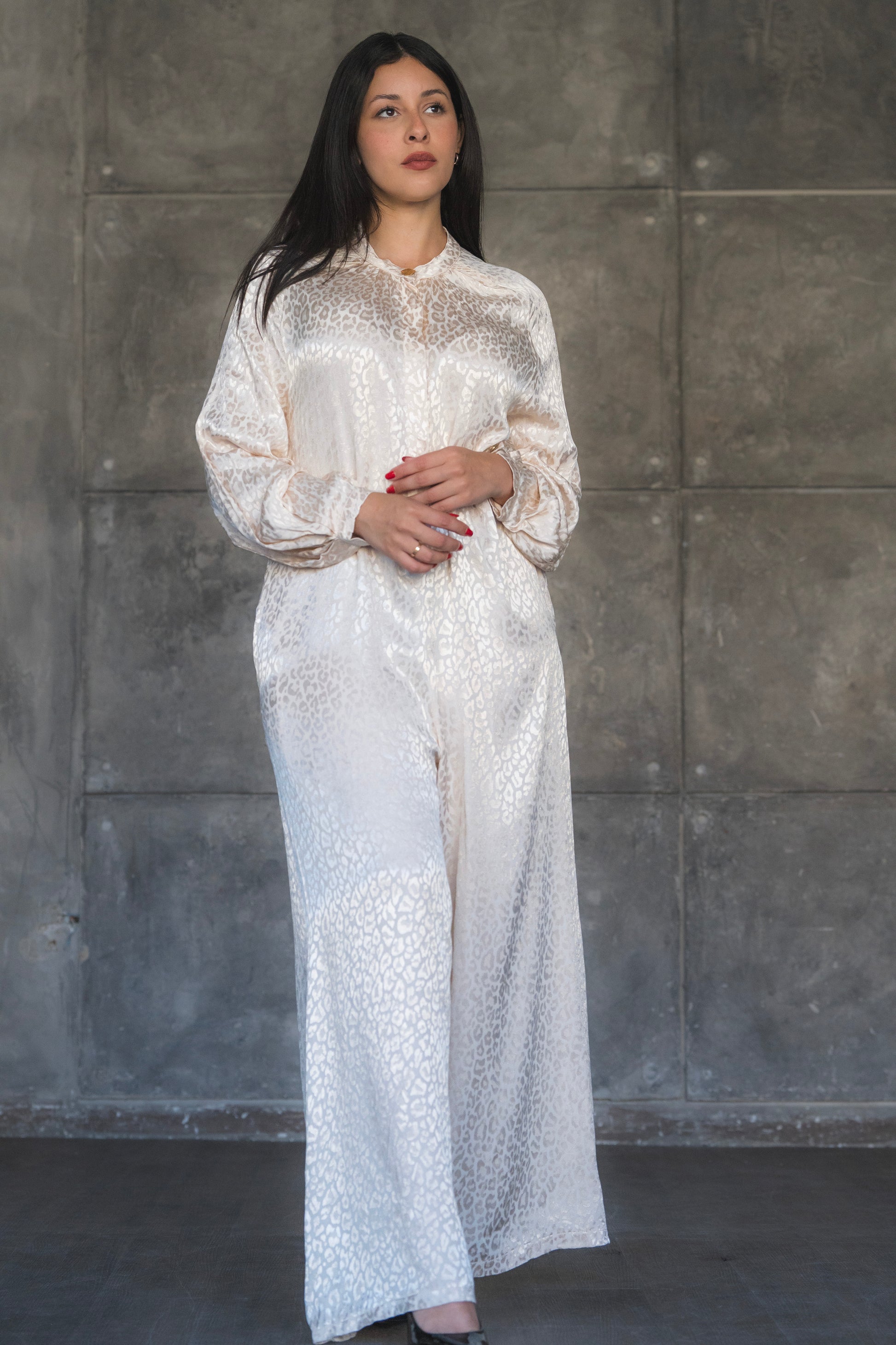 Satin Jacquard Leopard Print Wide-Leg Jumpsuit
