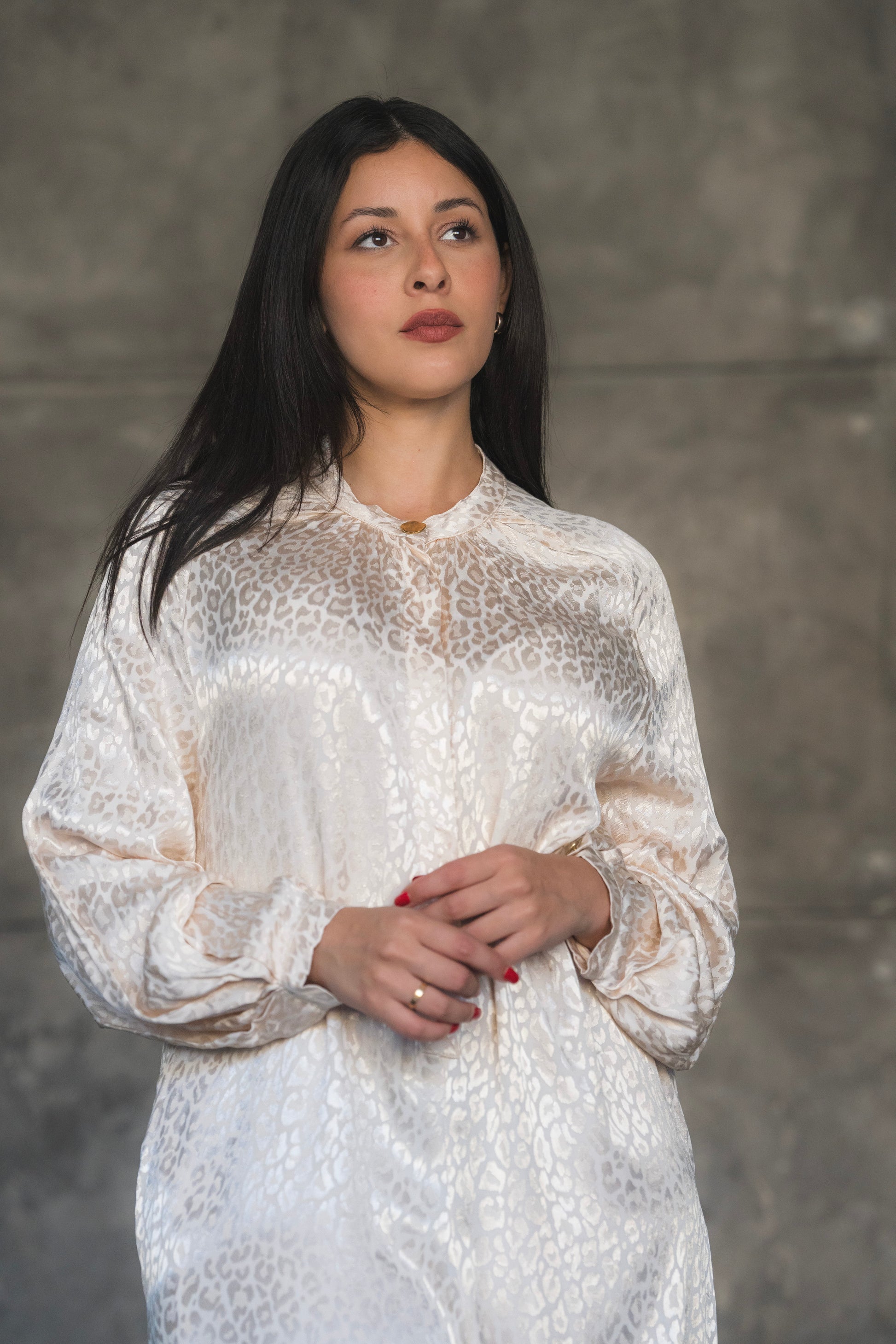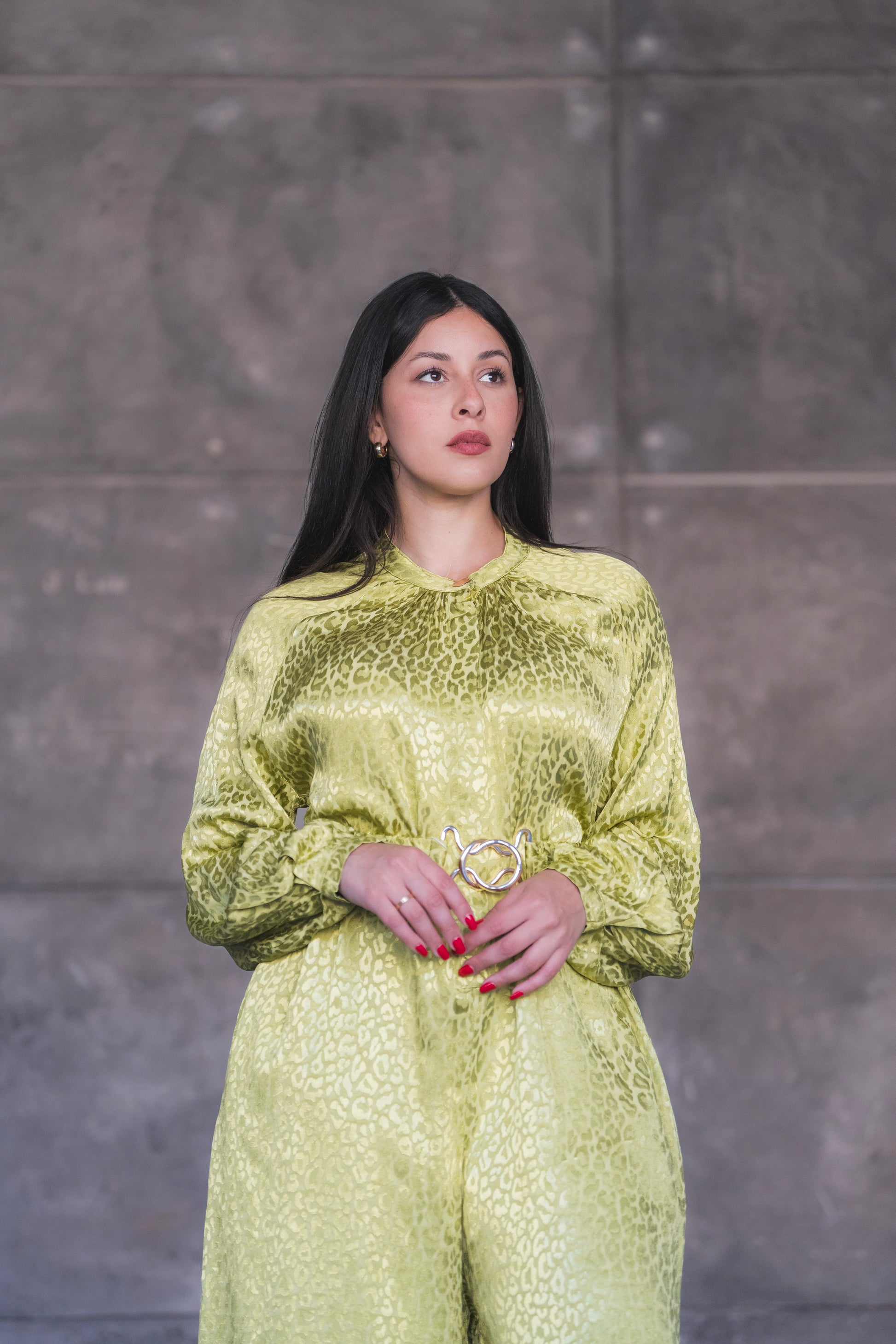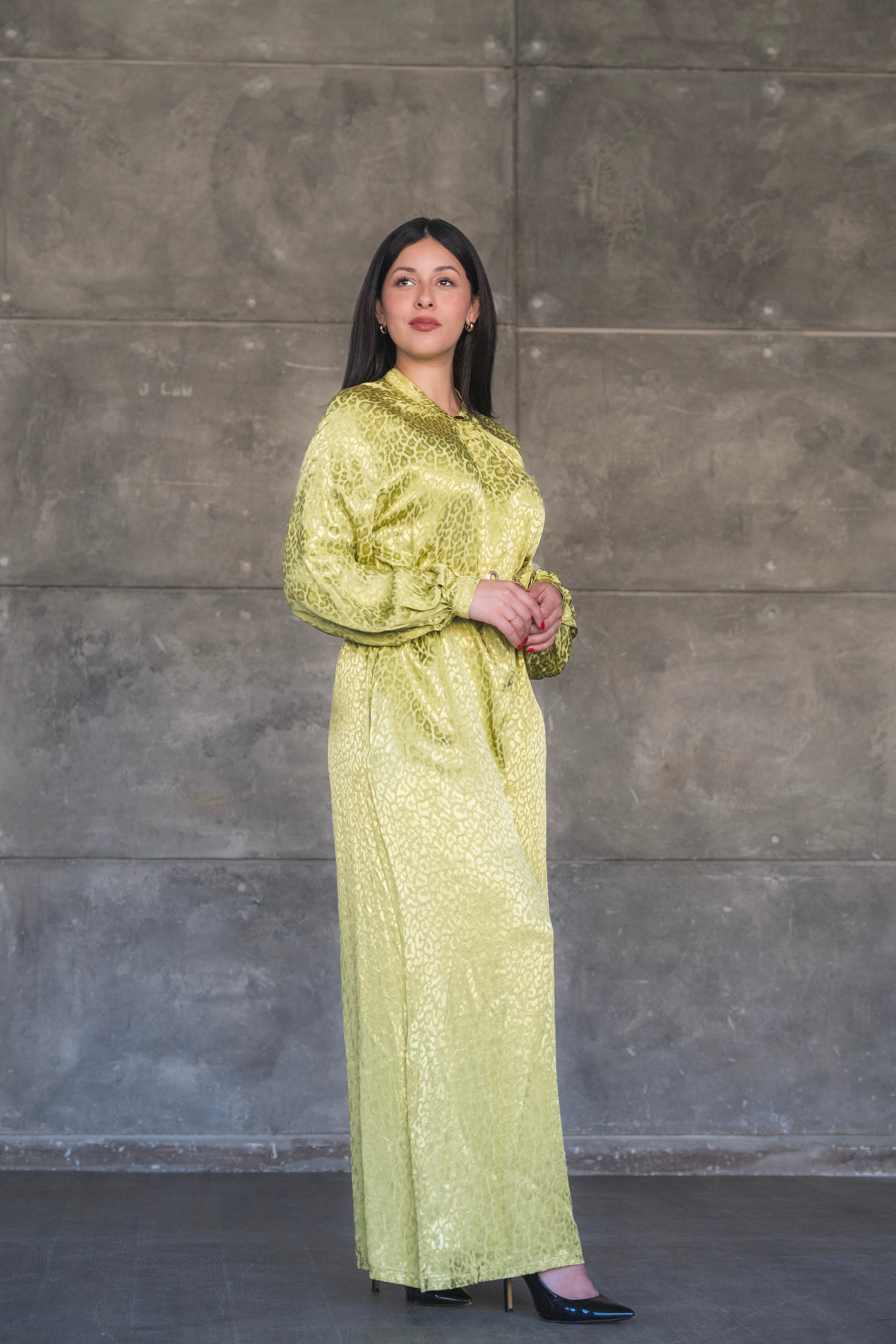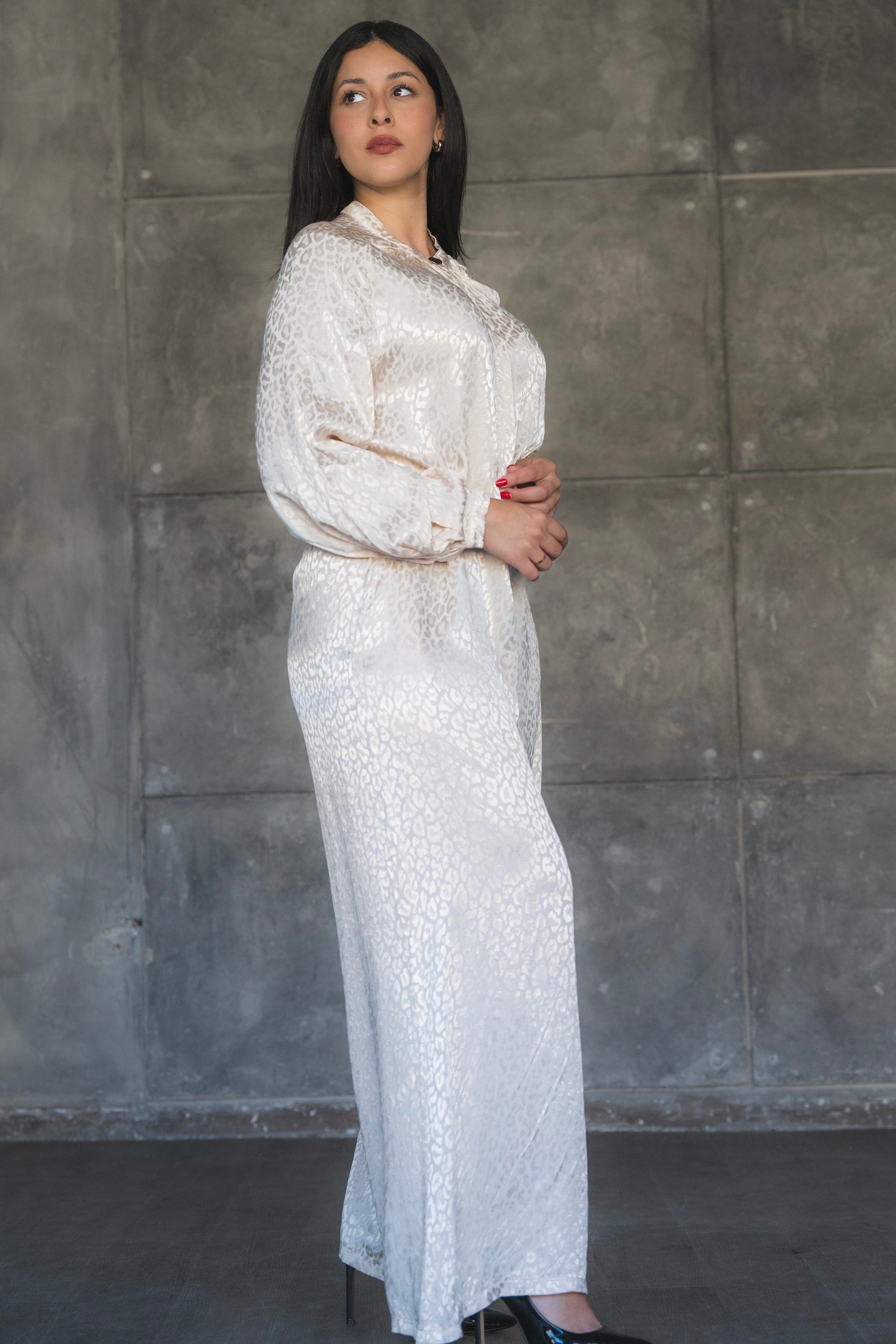 Satin Jacquard Leopard Print Wide-Leg Jumpsuit